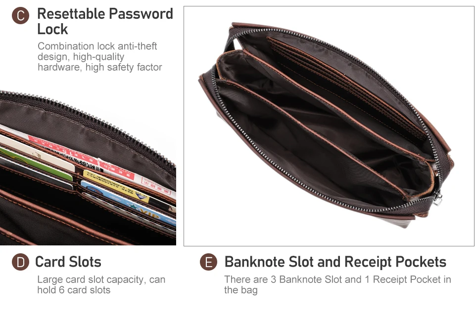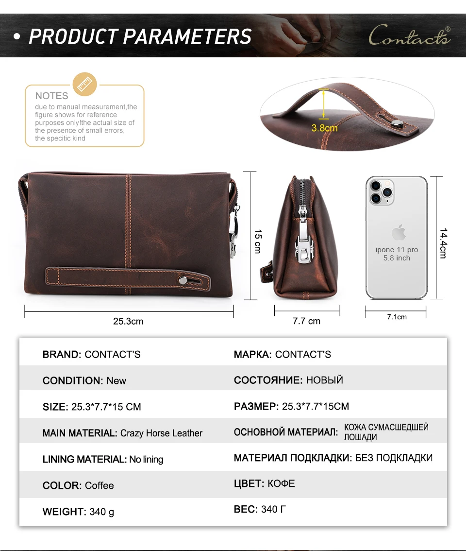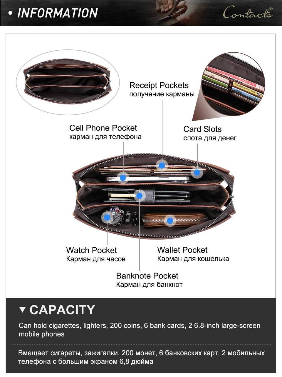 CONTACT’S Pochette in vera pelle da uomo Personalizza Portafoglio con frizione Password Lock Design Borse da uomo con nome incisione regalo