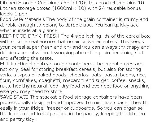 Contenitore per alimenti da cucina con coperchio ermetico, set da 10 set da 20 pezzi (10 contenitori, 10 coperchi), 1,6 L x10 senza BPAPensa ad un Regalo Unico e Utile per le Persone a te Vicine!! Regala un buono a partire da € 10,00 a € 300,00