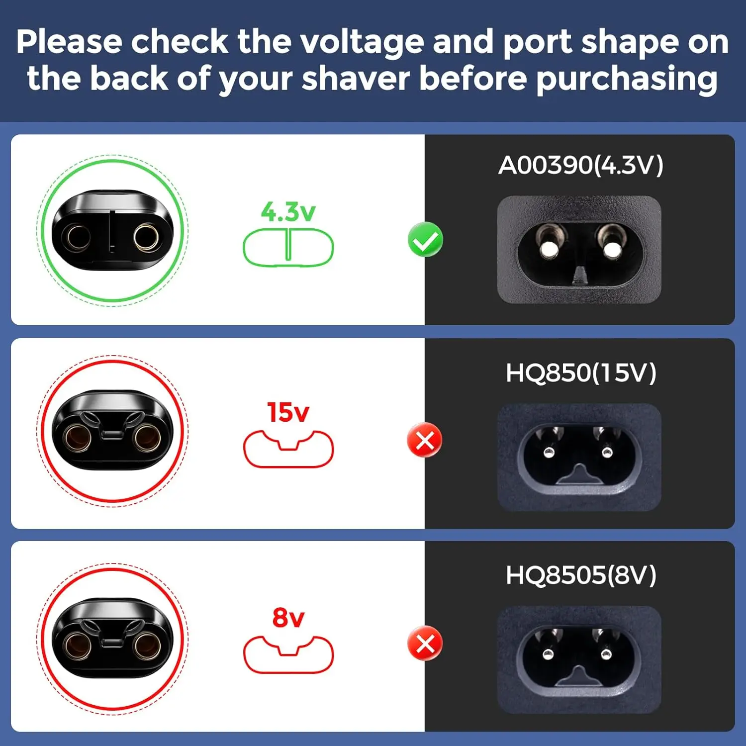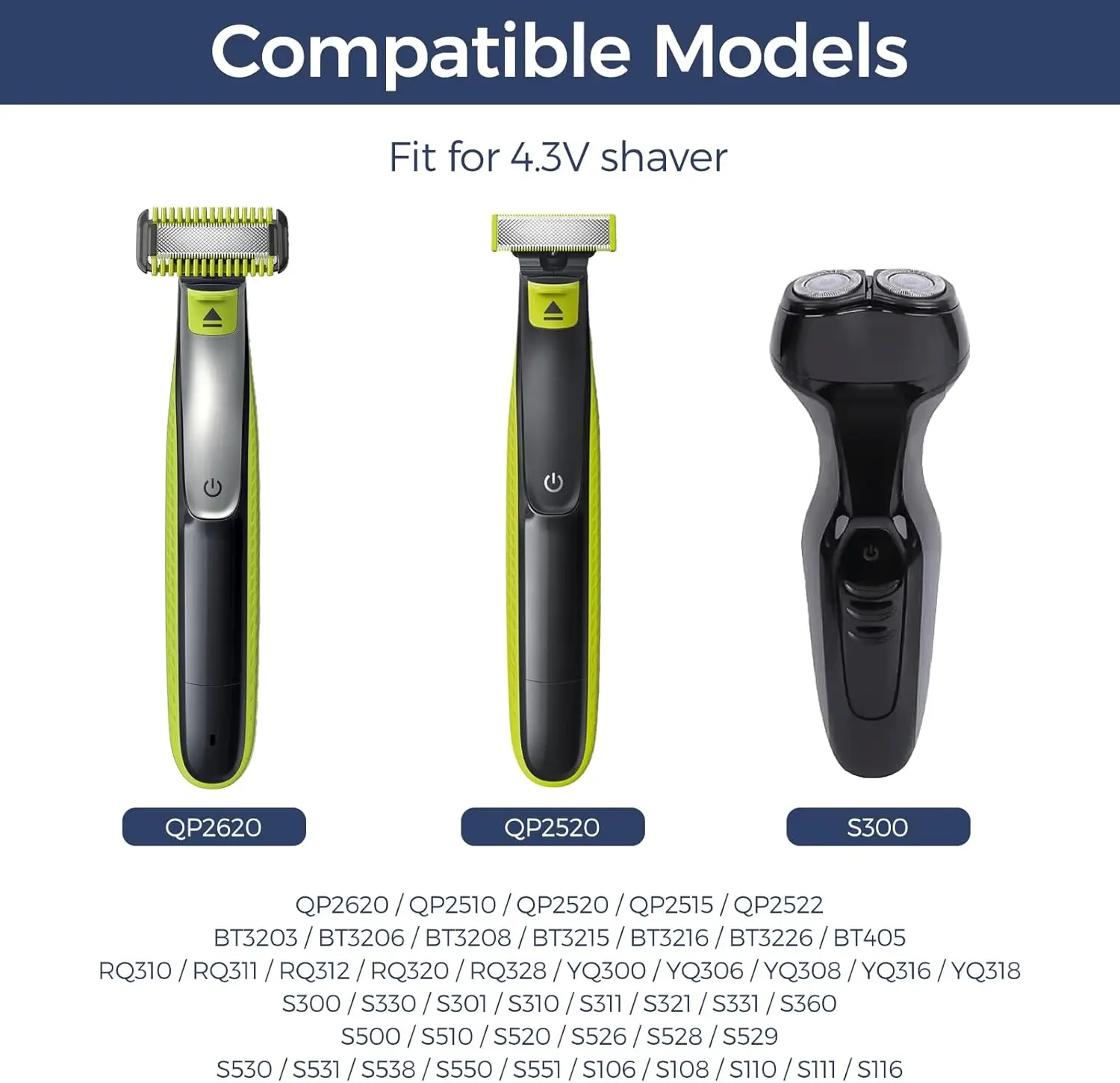⚡【Large compatibilità】per tagliabordi elettrico ibrido a una lama QP2520 QP2515 QP2620.❗Nota:❌❌❌Non adatto per una lama QP2630 QP6505 QP6510 QP6520 QP6530 QP6550 QP6620!(Si prega di controllare il tuo modello di rasoio, la forma dell’interfaccia, i volt e la nostra presa del caricatore con attenzione prima dell’acquisto.)