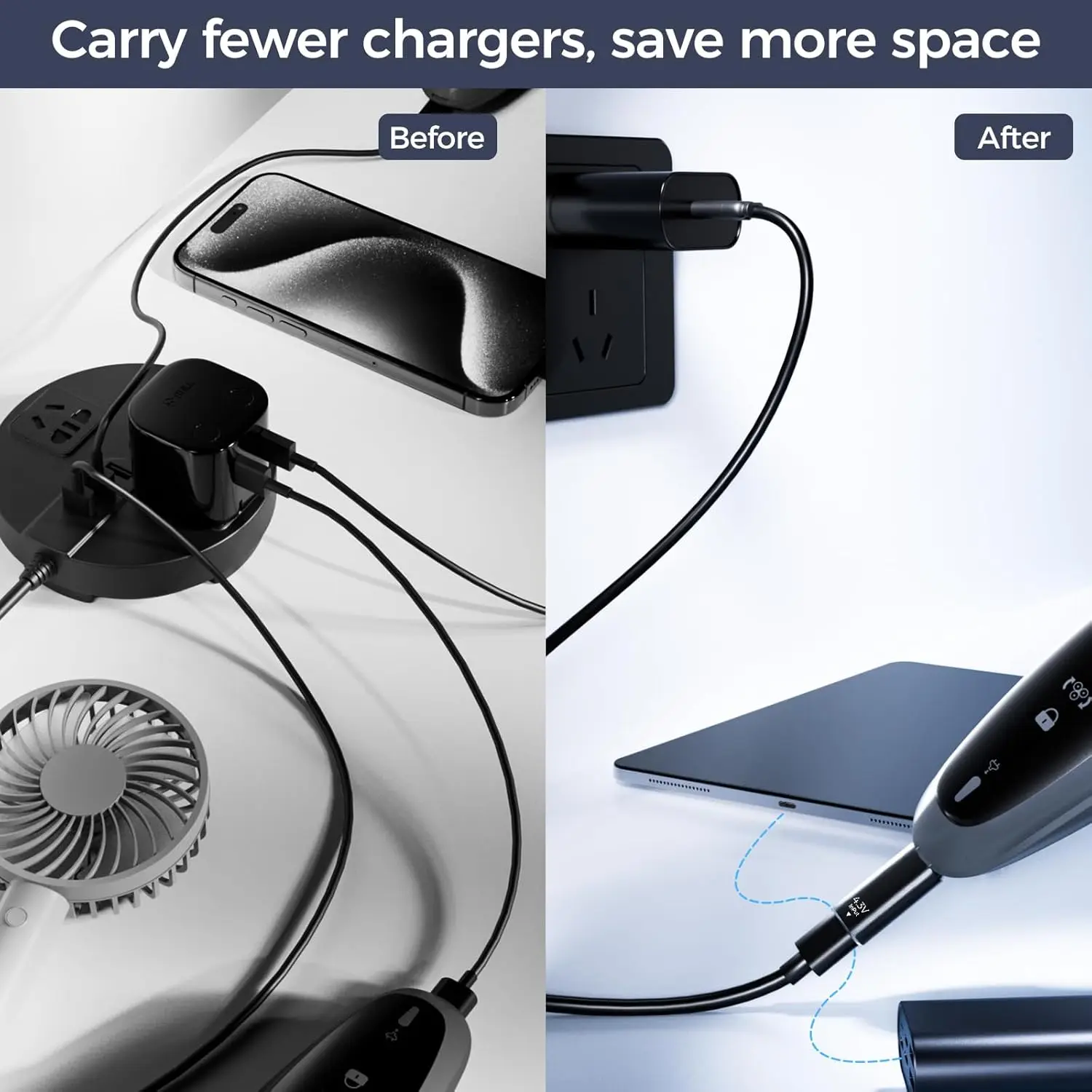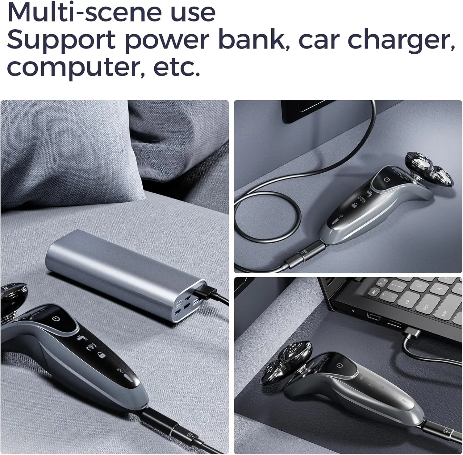 ????【Girante per i viaggi】Siamo sempre nella ricerca delle opzioni che minimizza il numero di spine e cordoncini che hai bisogno di prendere e riutilizzare gli stessi componenti per molteplici scopi?Con questo piccolo adattatore per rasoio di tipo C, puoi utilizzare ora lo stesso blocco di ricarica e il cavo USB-C utilizzato anche per caricare il rasoio invece di prendere il cavo di ricarica e la spina originali.Aiuta a minimizzare il disordine del cavo e lo spazio richiesto al imballaggio dei tuoi componenti elettrici.