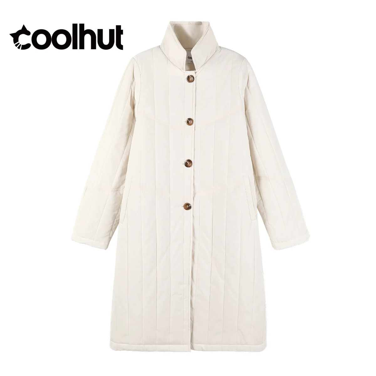 Il design minimalista del punto verticale e un modello solido dona questo parka un look elegante e moderno.