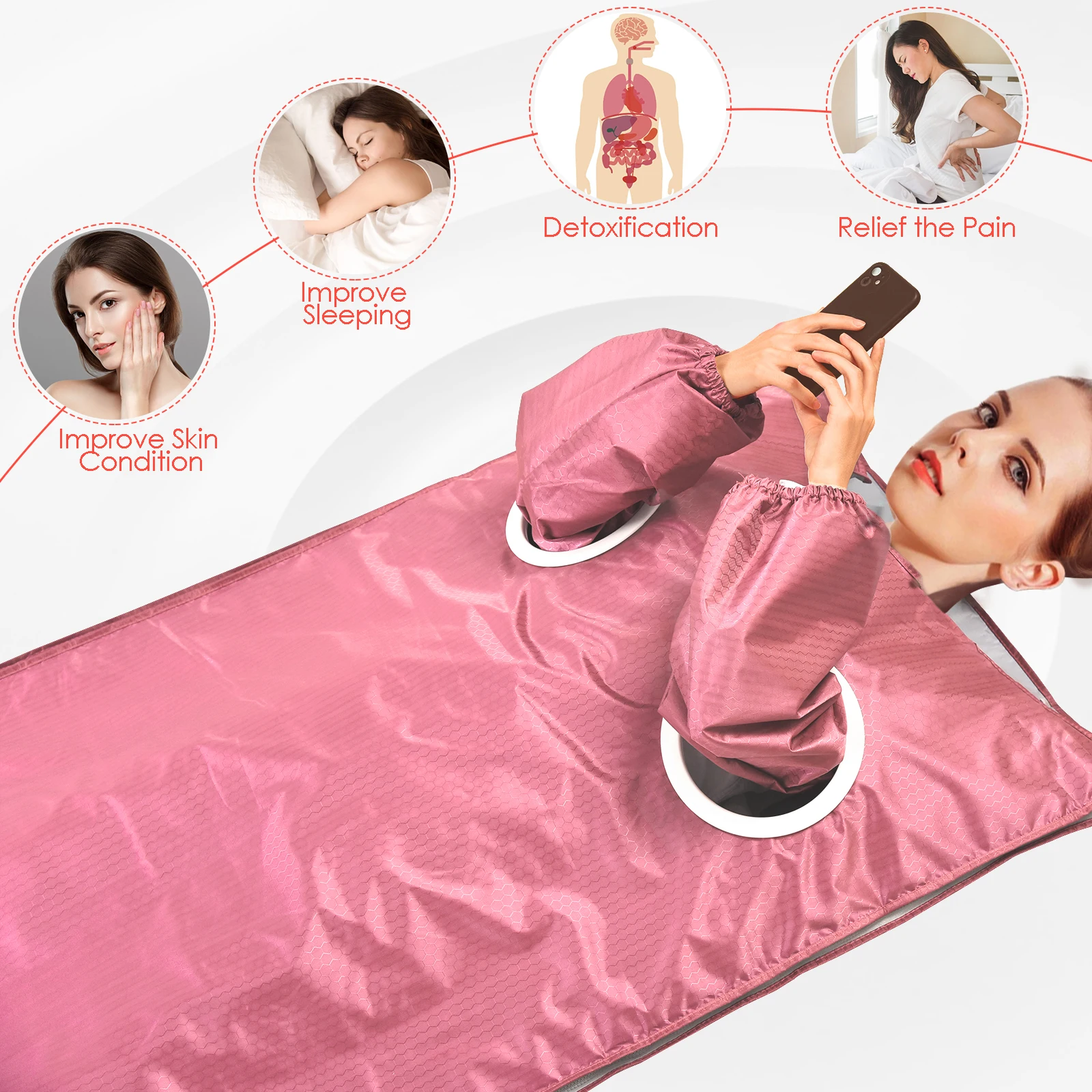 4.Manicotti rimovibili: Con un paio di maniche rimovibili, ti aiuta a bloccare nel calore e liberarsi le mani quando utilizzare la coperta da sauna.Questa coperta da sauna può avvolgere tutto il corpo in tutte le direzioni e puoi utilizzare il telefono cellulare, leggi un libro o leggi un giornale mentre si diverte al sauna.Dotato di pulsanti intelligenti del telecomando, è più comodo da usare.