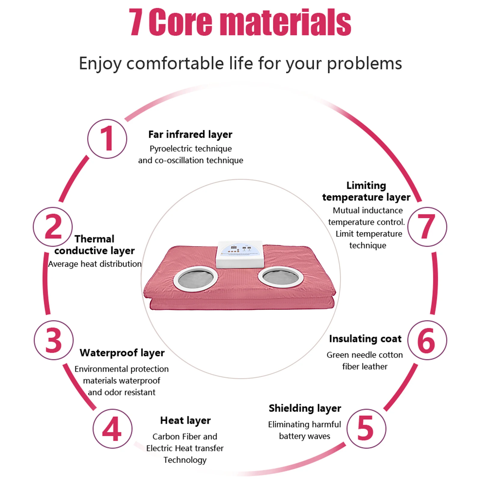 3.Resta in salute: la coperta per sauna a infrarossi può rilasciare raggi infrarossi lontani da 9-14 μm che risonano con le cellule della stessa frequenza nel corpo umano, creare un effetto termico naturale, eliminare il sudore nel corpo, accelera un effetto sano.