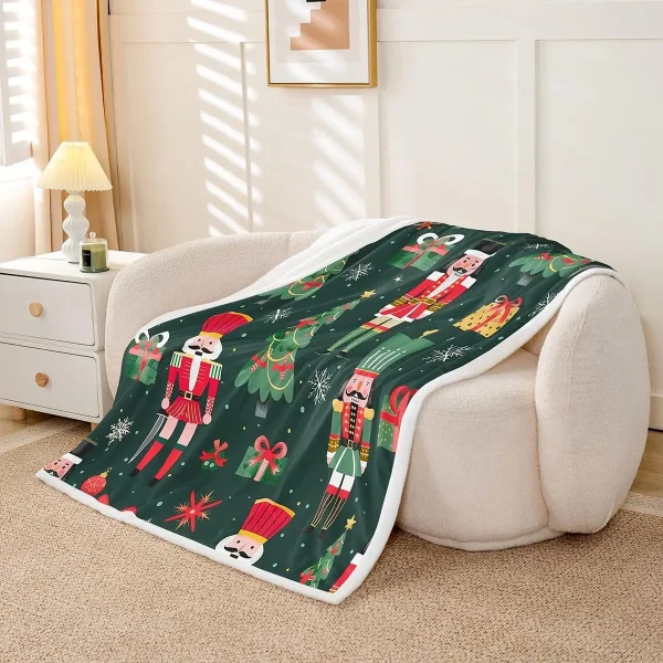 Coperta da tiro in pile di buon Natale ultra morbida per divano letto, coperta Sherpa schiaccianoci dei cartoni animati, fiocchi di neve degli alberi di Natale 1Coperta da tiro in pile di buon Natale ultra morbida per divano letto, coperta Sherpa schiaccianoci dei cartoni animati, fiocchi di neve degli alberi di Natale