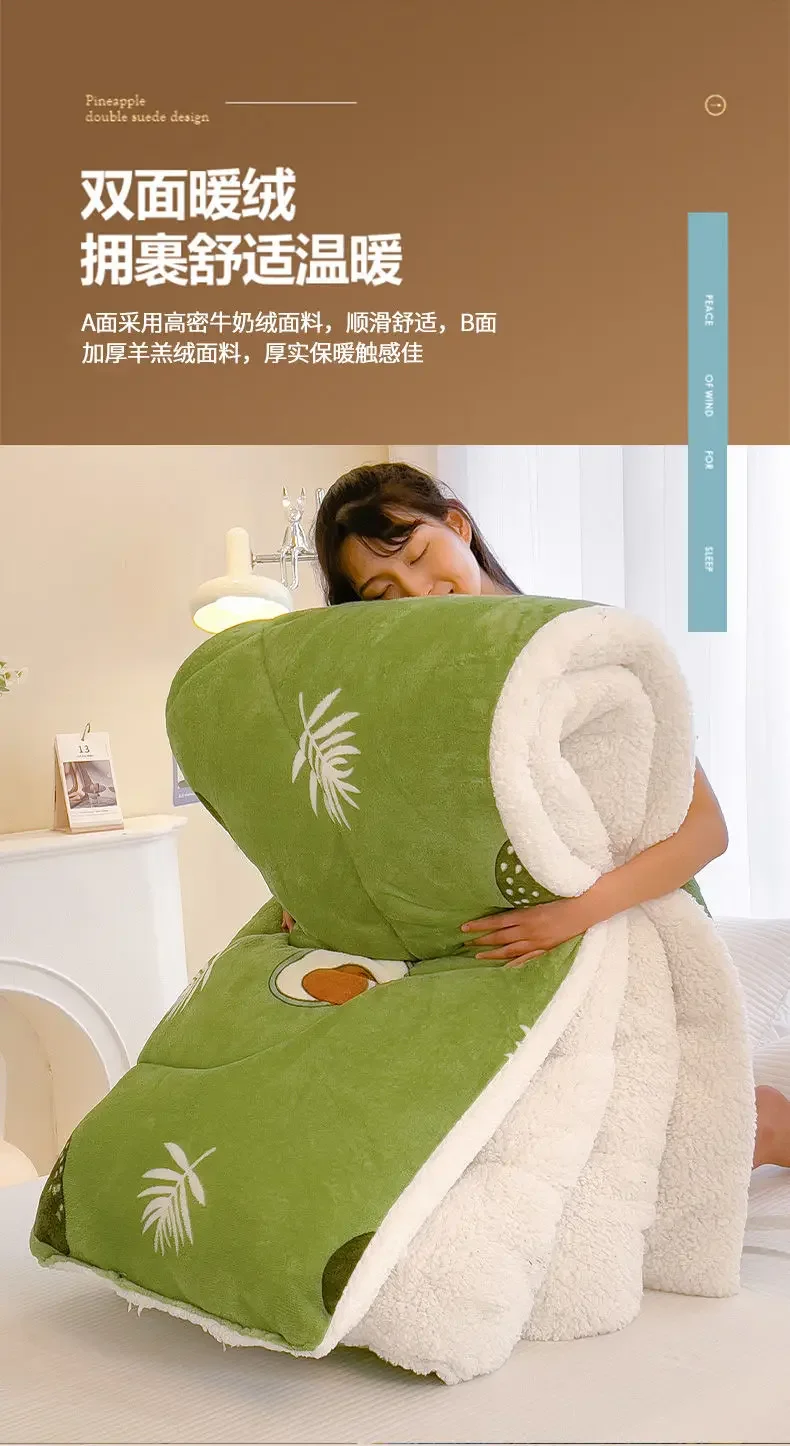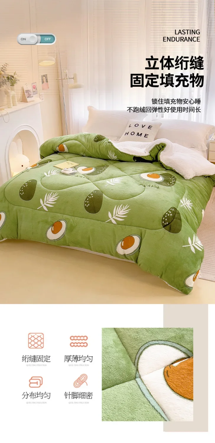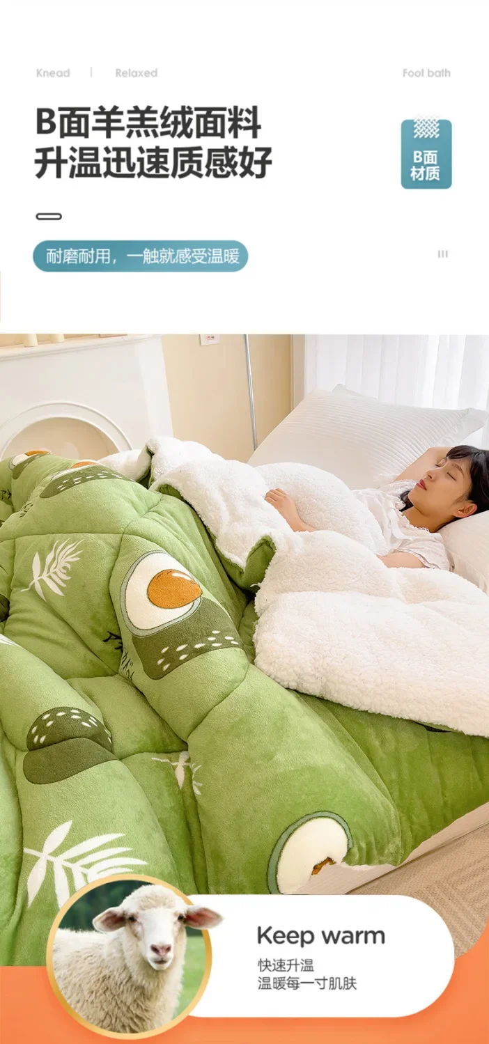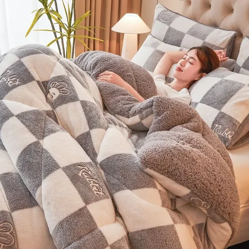 Coperta denso in peluche di lana di agnello invernale, spessa e calda, doppia peluche, trapunta in cotone delicato, piumino per dormitori singoli e doppi