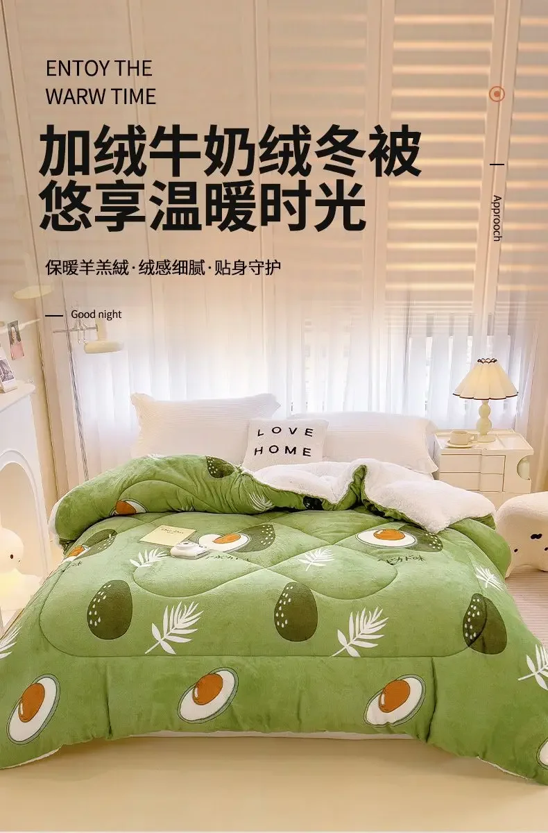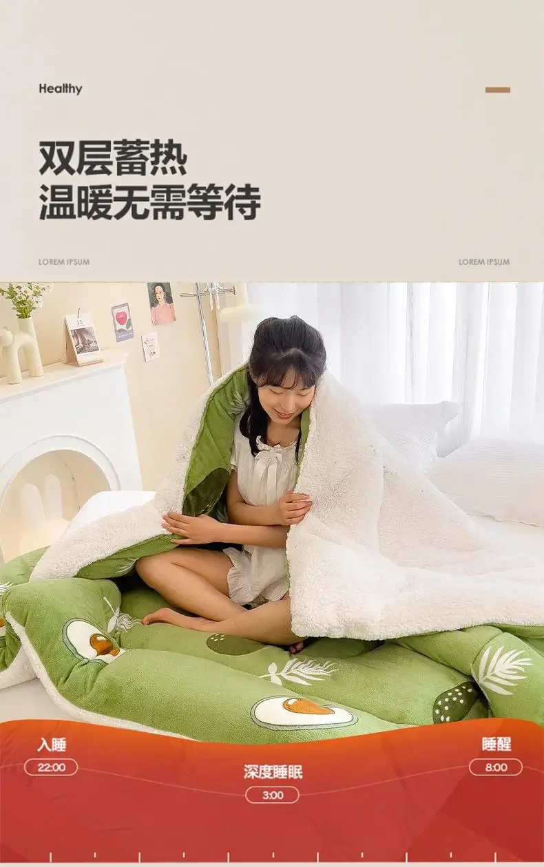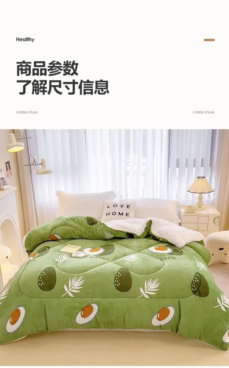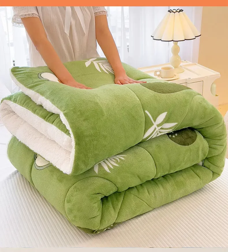 Coperta denso in peluche di lana di agnello invernale, spessa e calda, doppia peluche, trapunta in cotone delicato, piumino per dormitori singoli e doppi