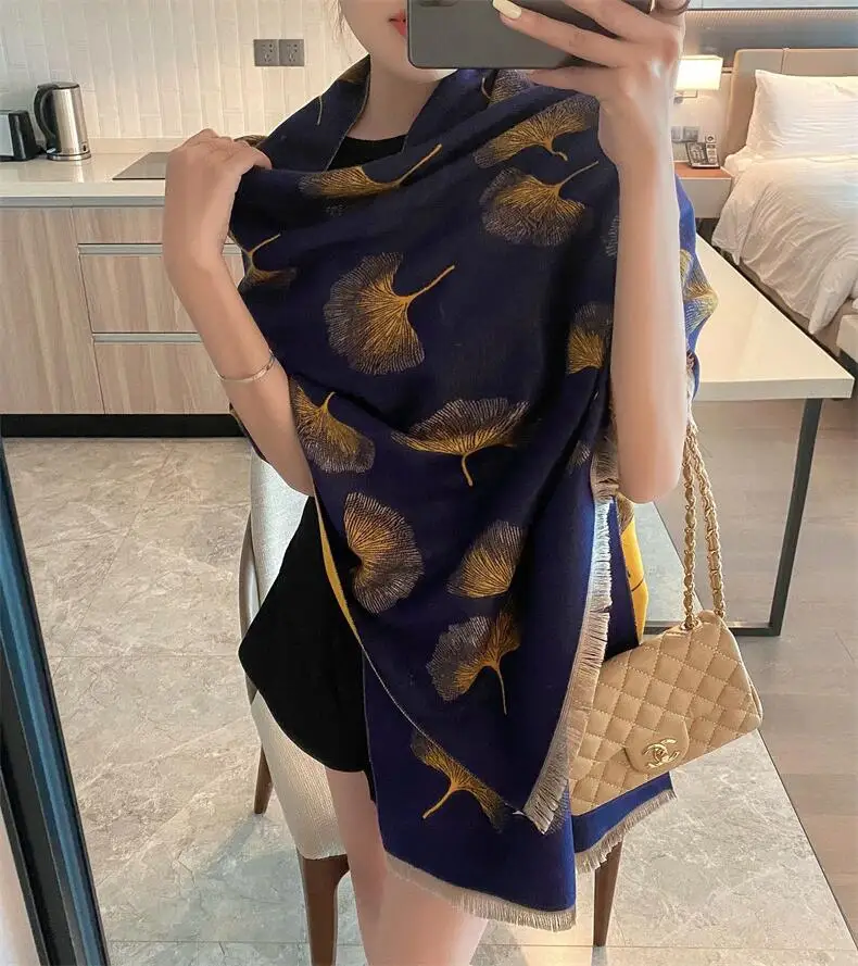 Coperta di cashmere spessa blu Sciarpa da donna Scialle caldo di Pashmina Involucri invernali Bufanda Stampa foglia Nuovo design Poncho Echarpe DonnaPensa ad un Regalo Unico e Utile per le Persone a te Vicine!! Regala un buono a partire da € 10,00 a € 300,00