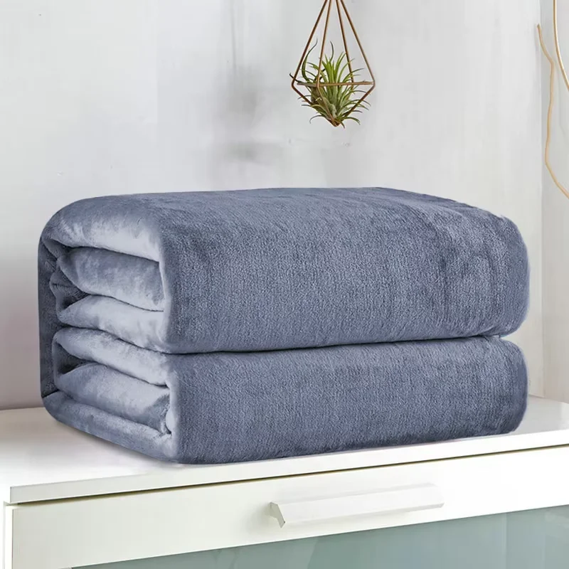 Coperta in pile di flanella grigia tinta unita coperta copriletto semplice leggera per bambini adulti Home Office
