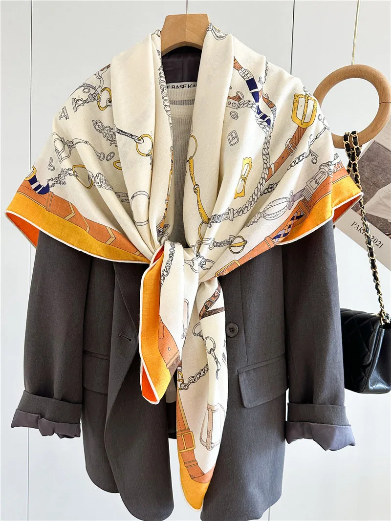 Descrizione: Materiale: 60% lana + 40% seta Dimensioni: circa 132*132cm (intervallo di errore 1-2cm) Bordi: laminati a mano Pacchetto: sacchetto del Opp Colore: colori classici, come spettacoli fotografici, (leggera differenza di colore in base alle impostazioni del monitor) Stampa diffusa su entrambi i lati