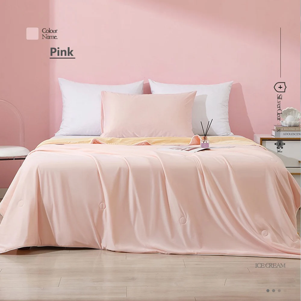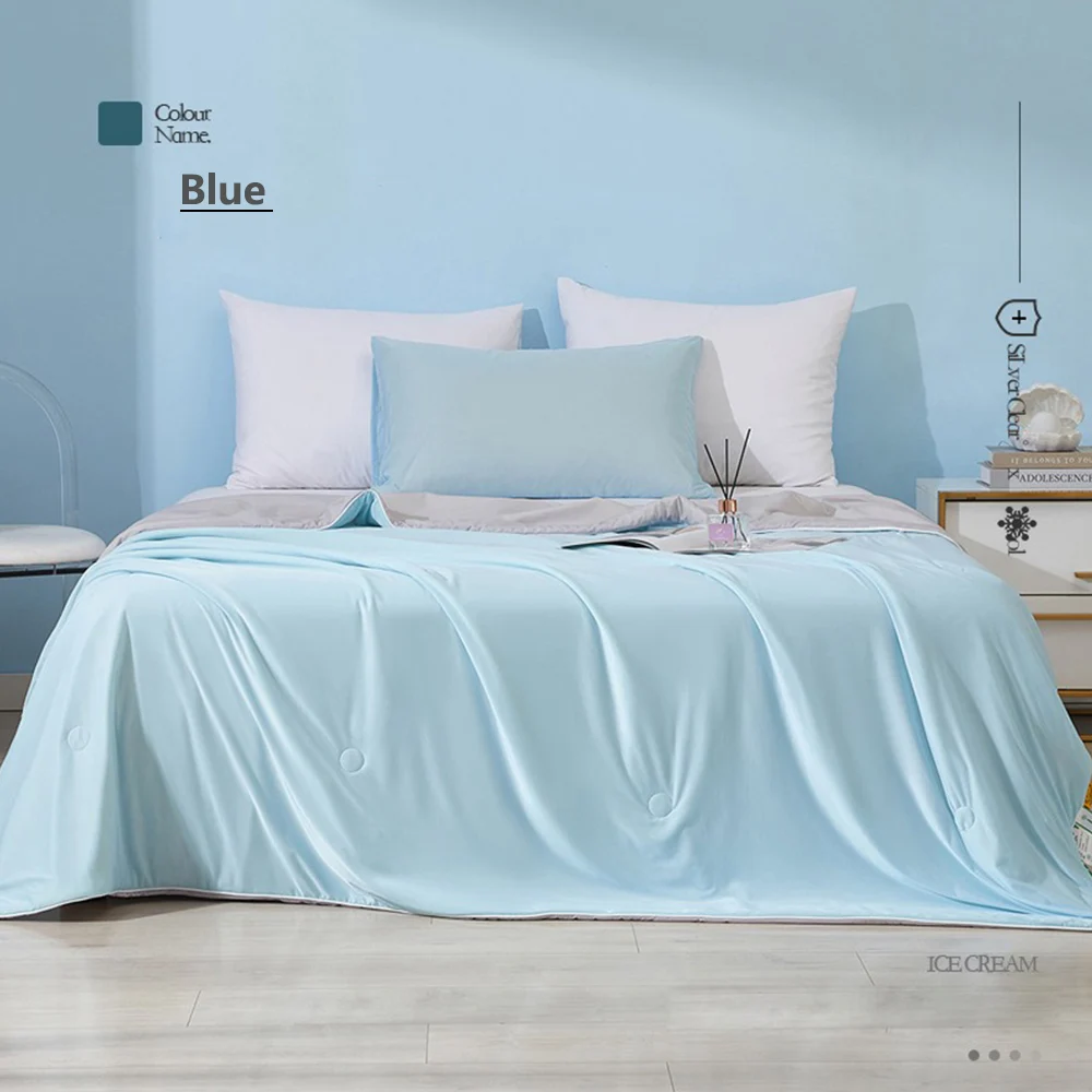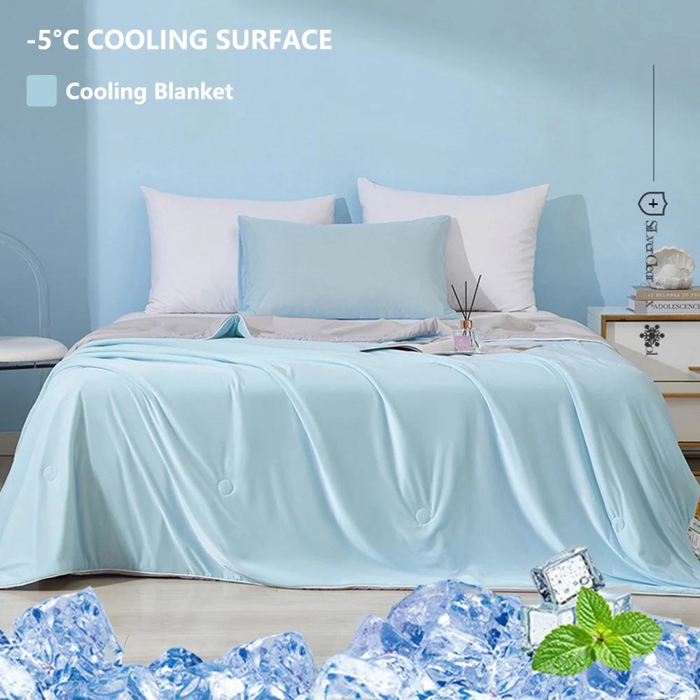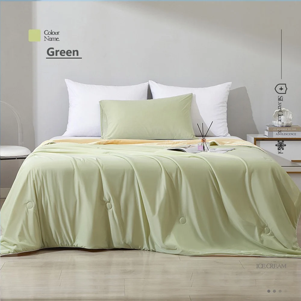 Il nostro piumino rinfrescante ha doppio lato, entrambi i lati sono rinfrescanti, perfetto per i dormienti estivi e caldi.Its un design reversibile ti scommuta lo stile della tua camera da letto mentre morto si diverte allo stesso fantastico comfort e rinfrescante.