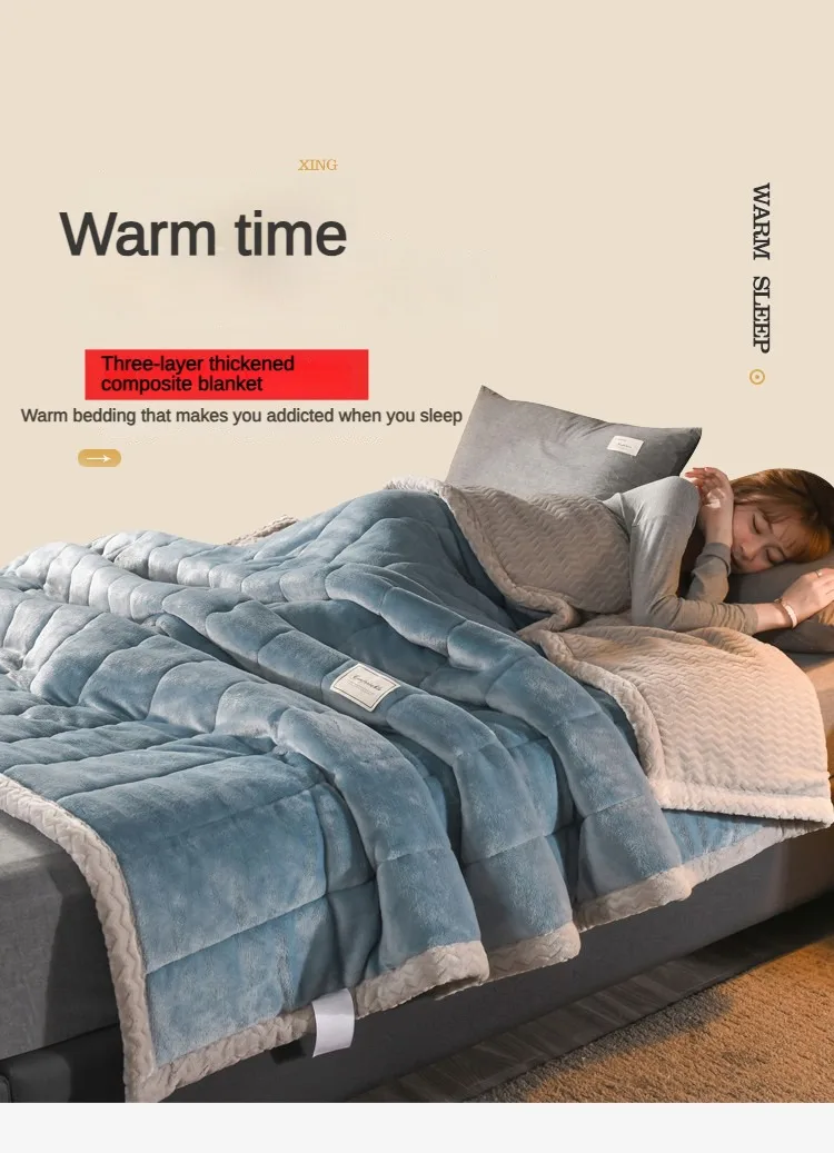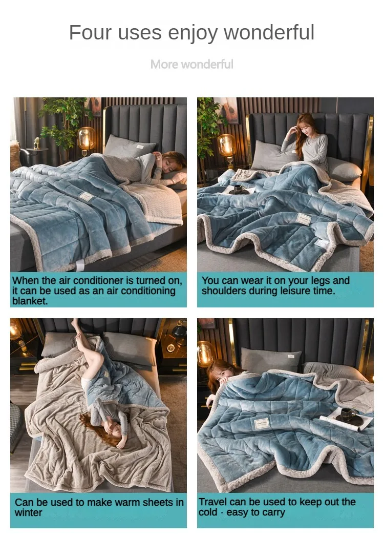 Direzioni: Coperta in pile corallo agnello magico spesso a tre strati, può essere utilizzata per l’autunno inverno, lenzuolo, trapunta invernale, coperta per divano, moquette e altri usi, lavaggio a mano e lavatrice, lanugine fine, biancheria da letto a doppio scopo, prodotti per la casa