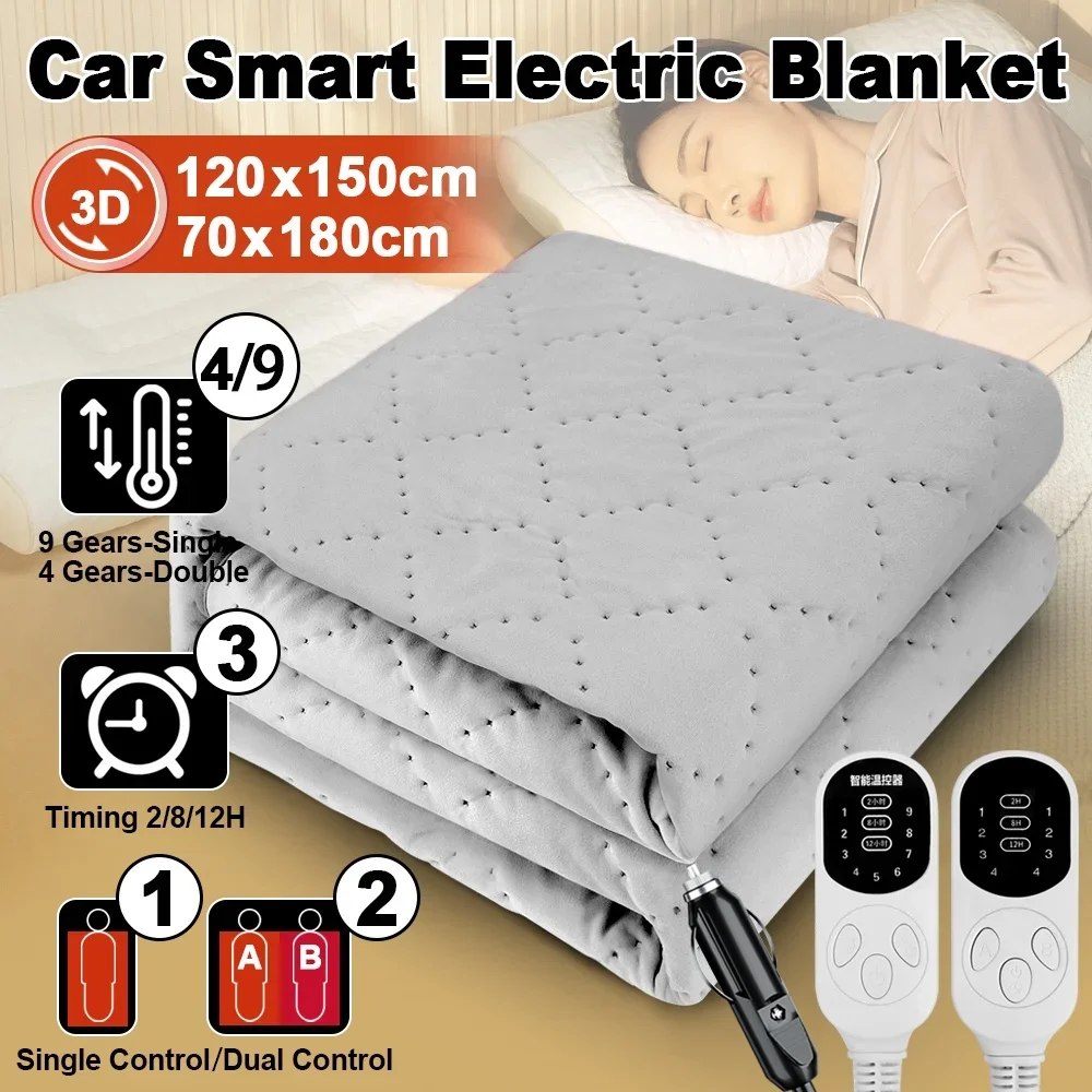 Coperte di calore elettriche per camper SUV 12V Auto Peluche Coperte riscaldanti elettriche più spesse Camion da campeggio Veicoli fuoristrada Cuscinetti riscaldanti