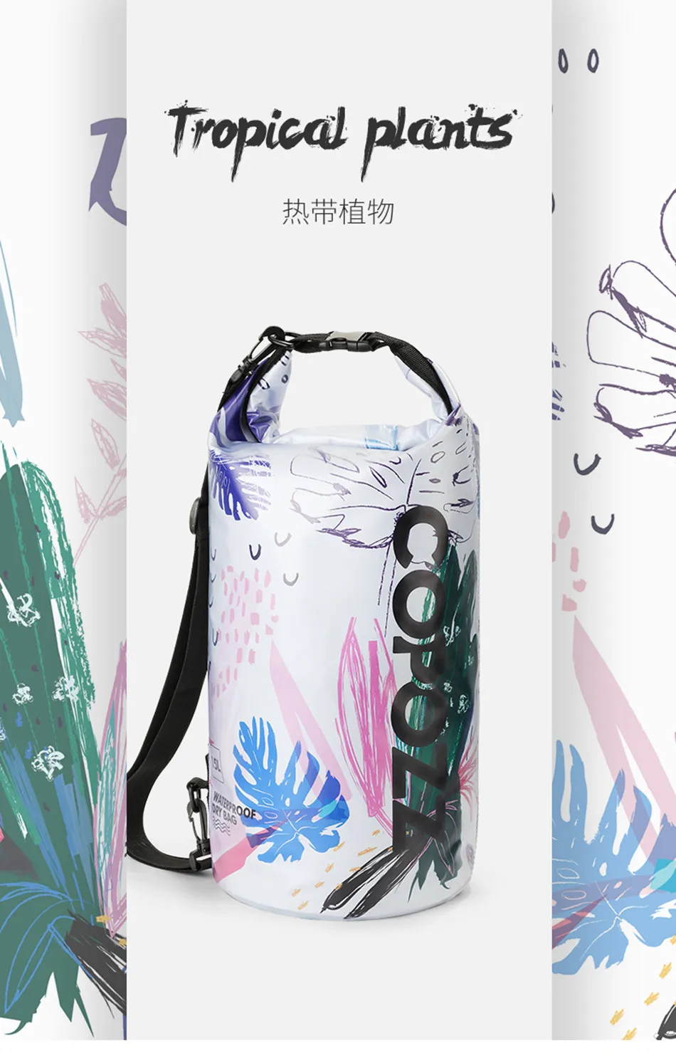 COPOZZ Swimming Bags Waterproof Bag Dry Bag PVC 15L Outdoor Sport Storage Bags Roll Top for Swim Travel Adjustable Sac Etanche