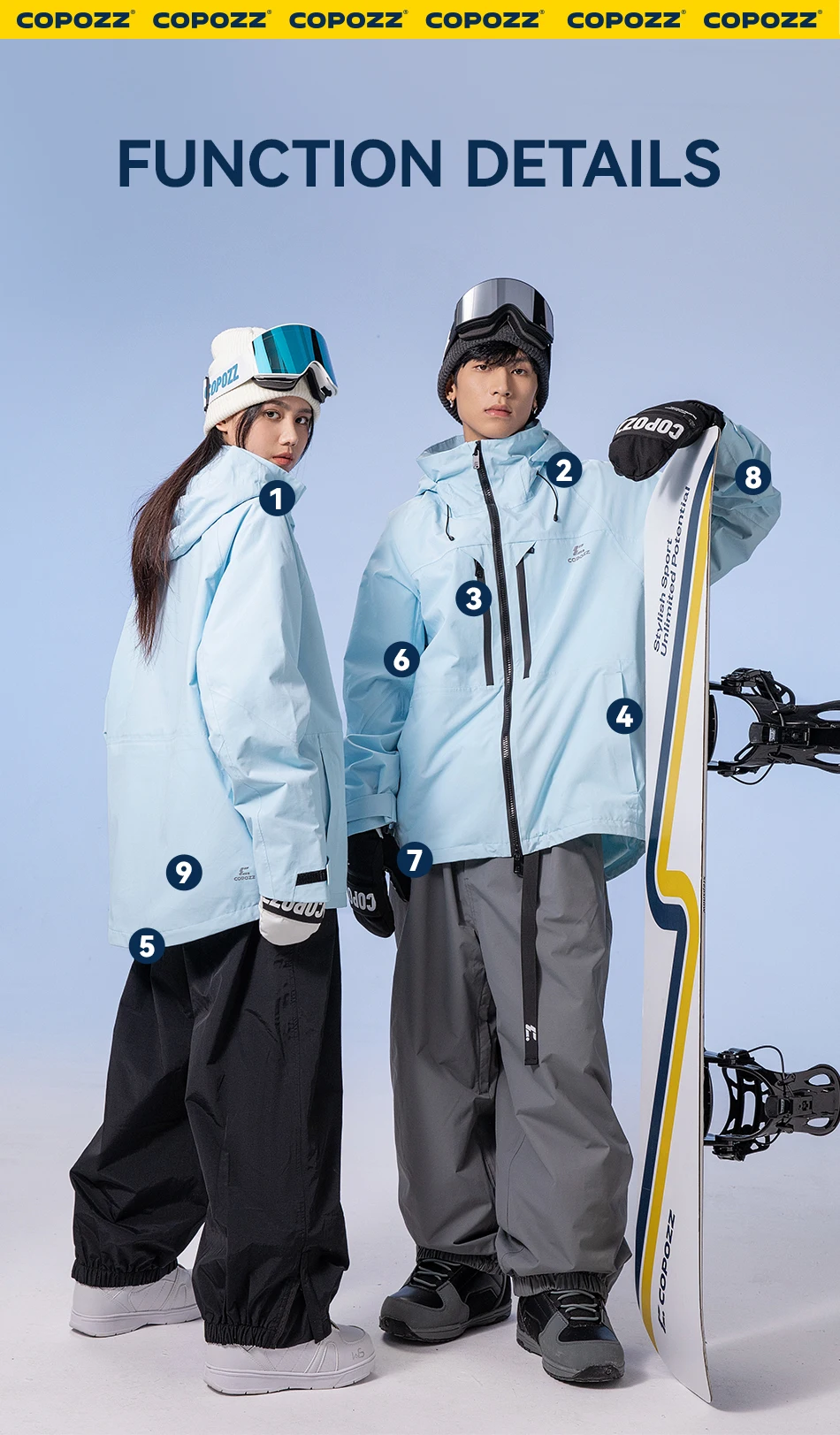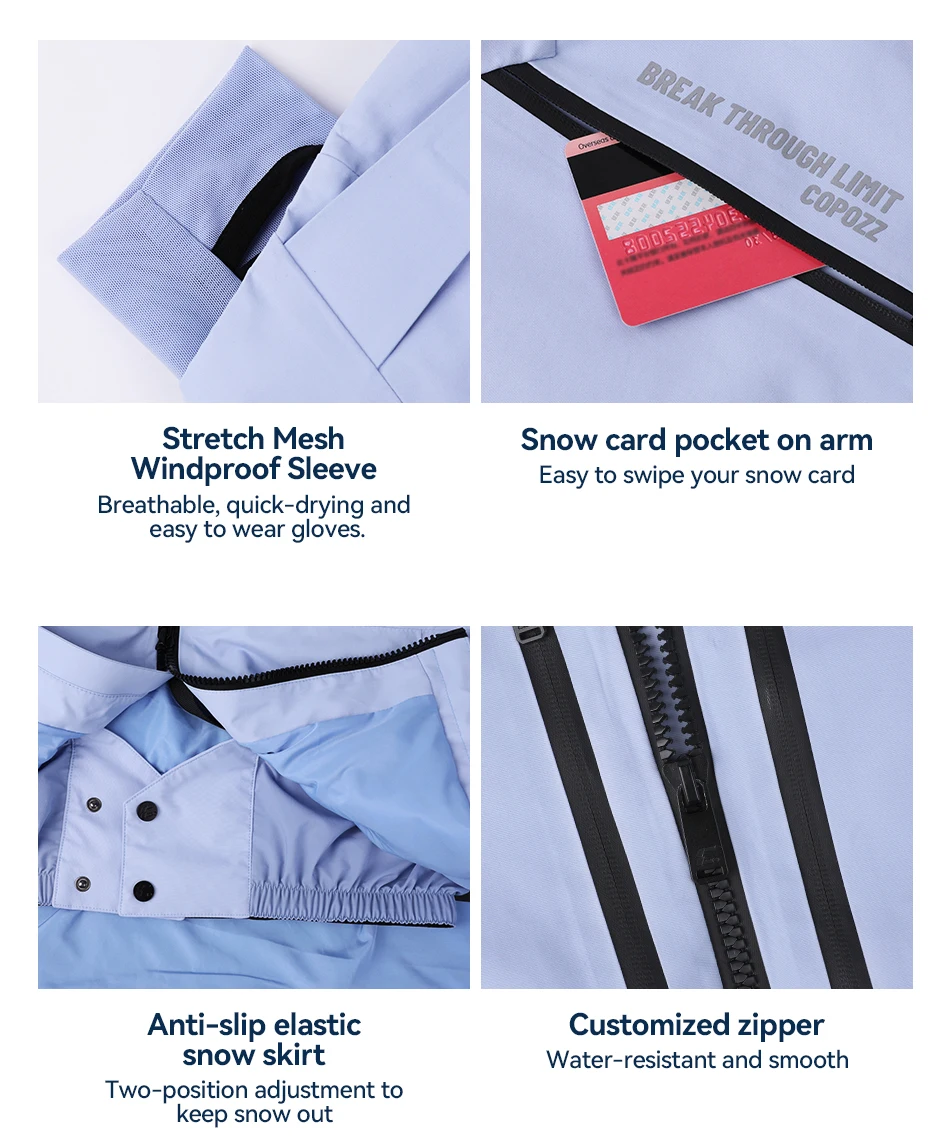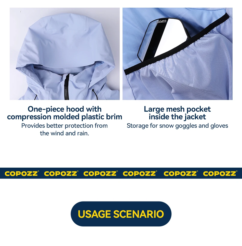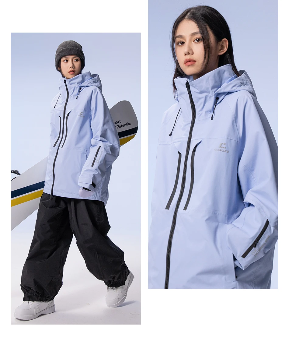 COPOZZ Taslan 3L Snowboard Giacca da sci Indossare Uomo Donna Inverno Con cappuccio Addensato Parka caldo Giacca da neve maschile per l’escursionismo in campeggio