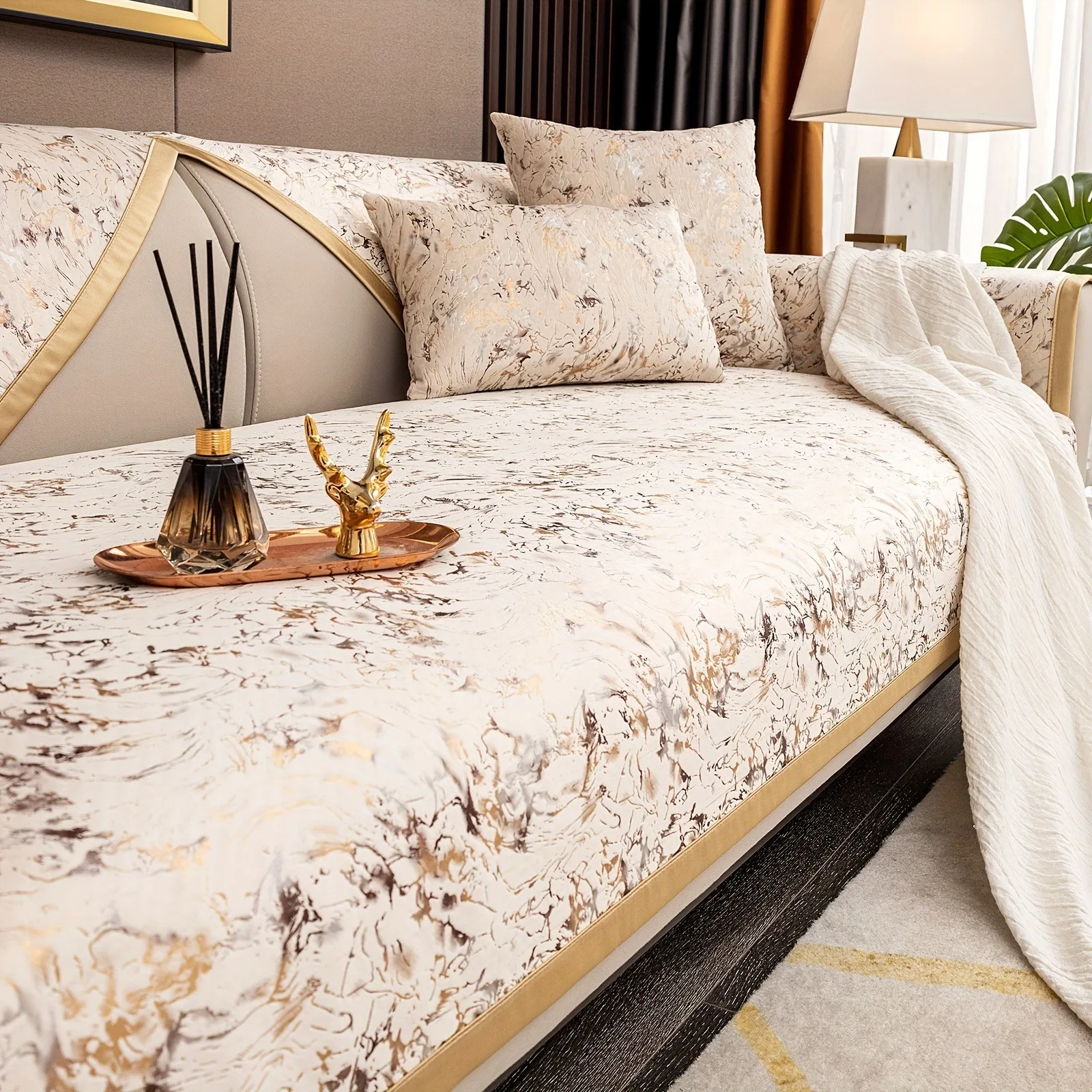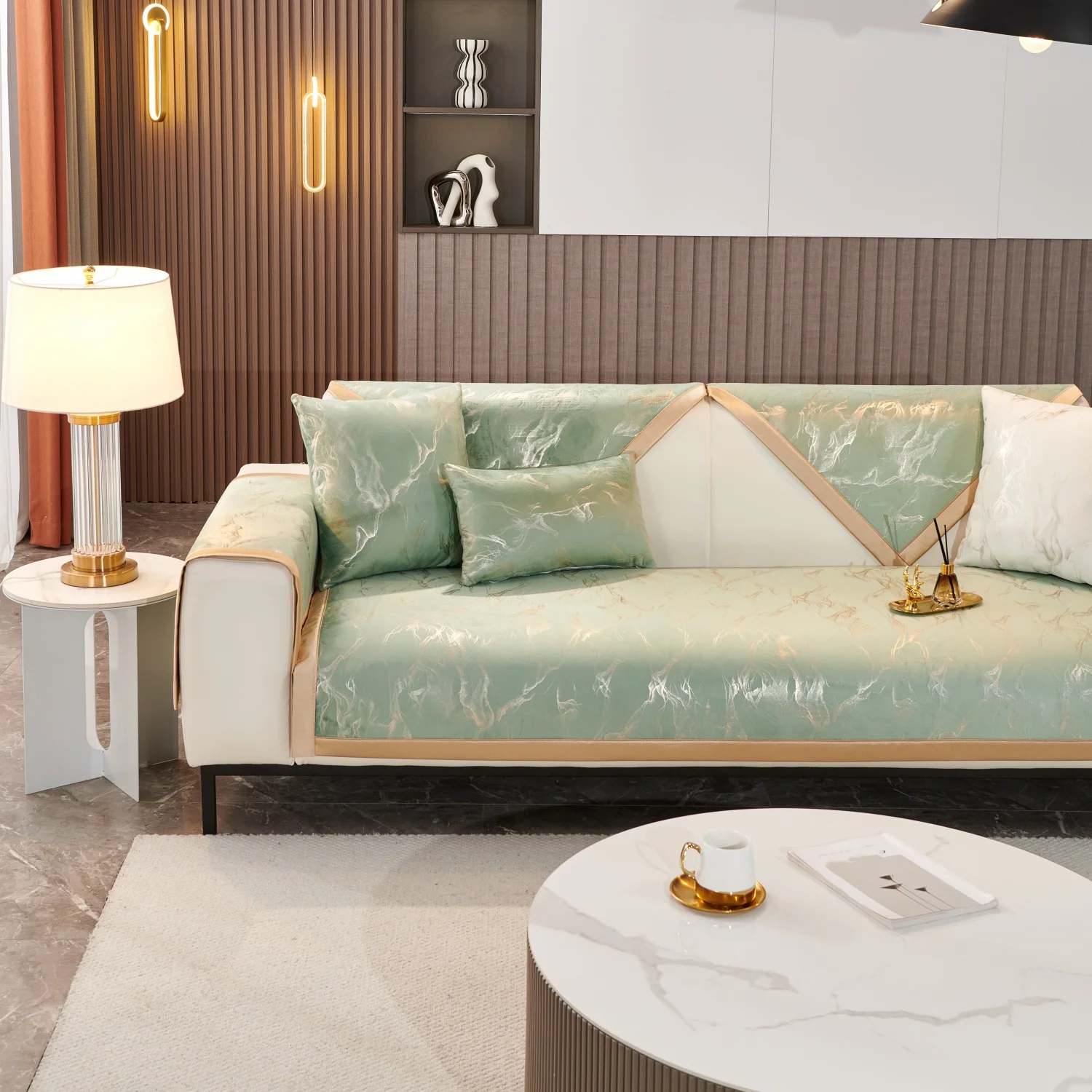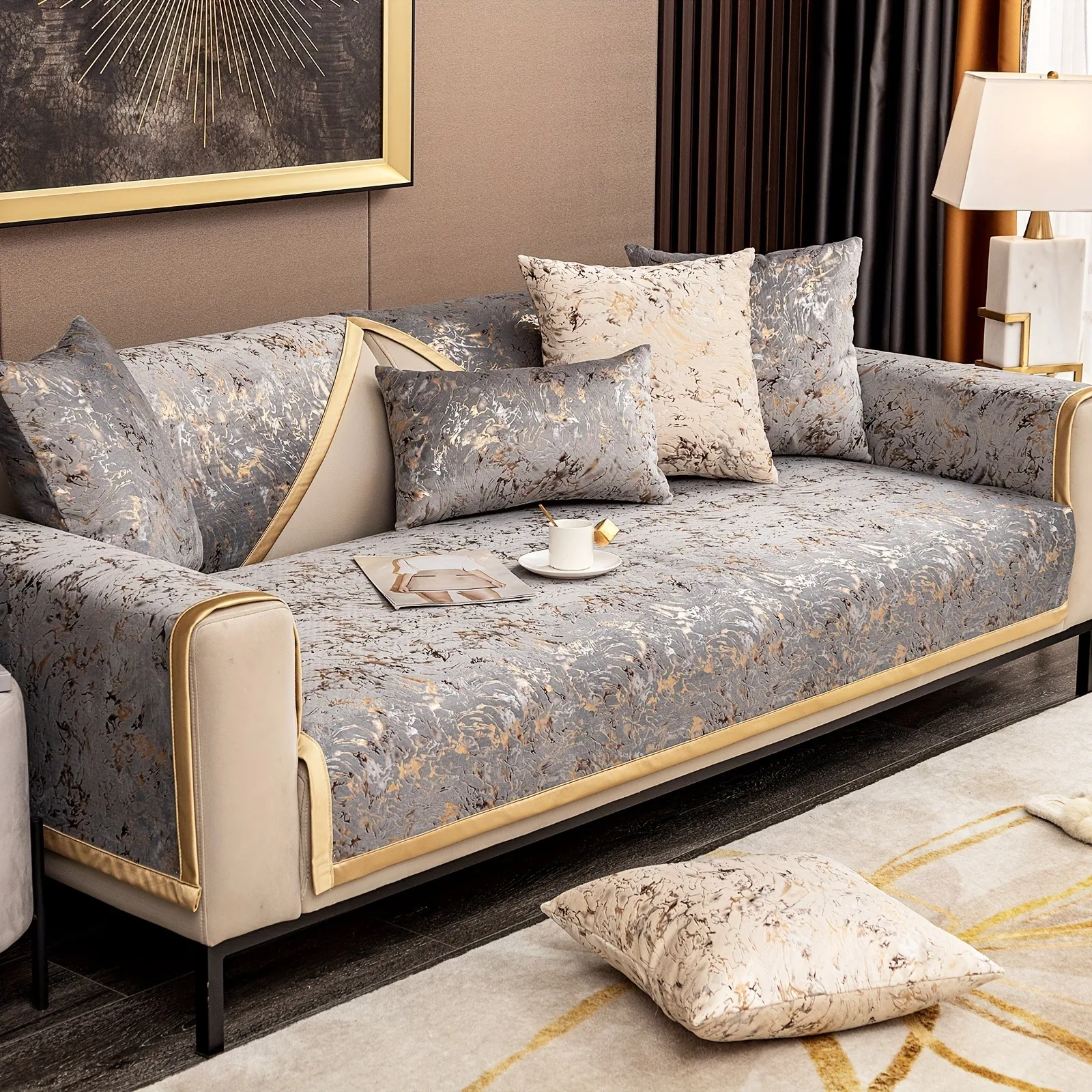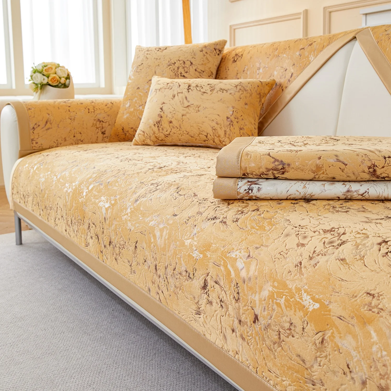 Copridivano antiscivolo in velluto abbronzante dorato, fodera per cuscino per divano quattro stagioni per asciugamano per divano protettivo per mobili da soggiorno