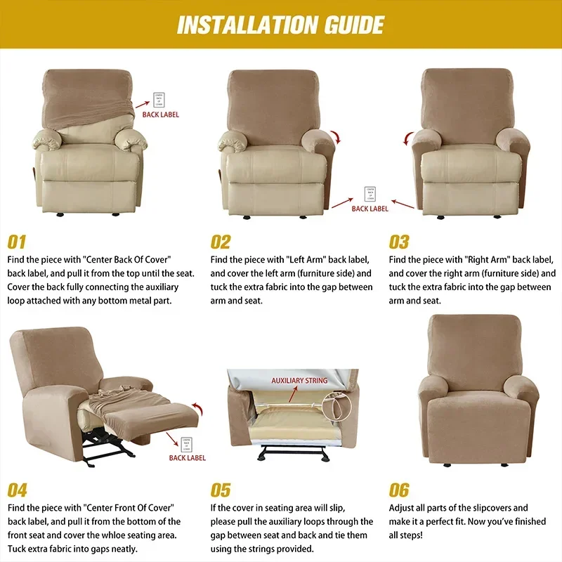 ✔ Realizzato in tessuto spandex spesso elasticizzato, lavorazione squisita con pelo corto denso e liscio che è traspirante, antirughe, senza pilling o sbiadisce dopo il lavaggio, consistenza delicata per un tocco extra morbido e robusto che non irriterà per la pelle. Utilizzando la nostra copertura universale per poltrona reclinabile può farti un nuovo look completo che può anche creare un elegante elemento domestico per la tua casa in un modo semplice, molto migliore che ripristina