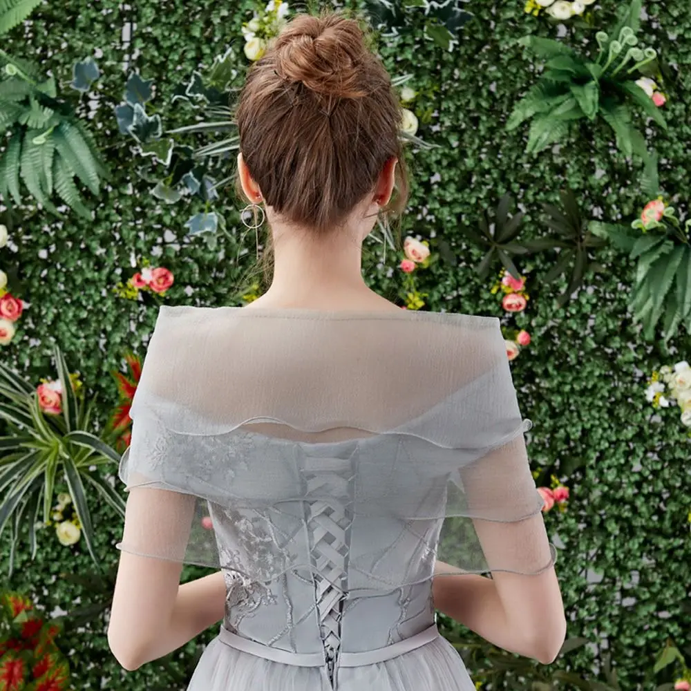 Wedding jacket for bride,lace tulle shoulder cover ups with lace appliques.