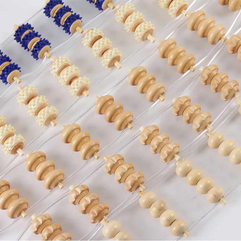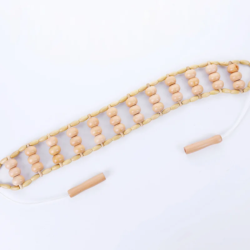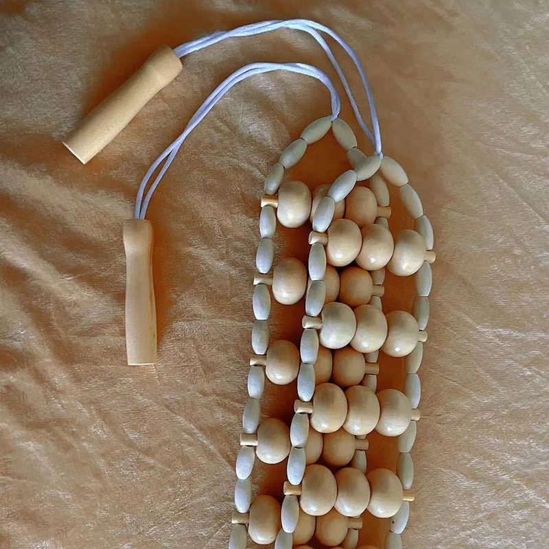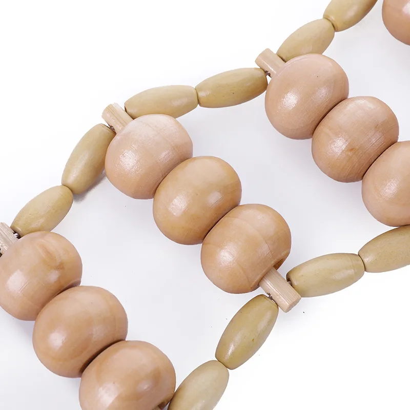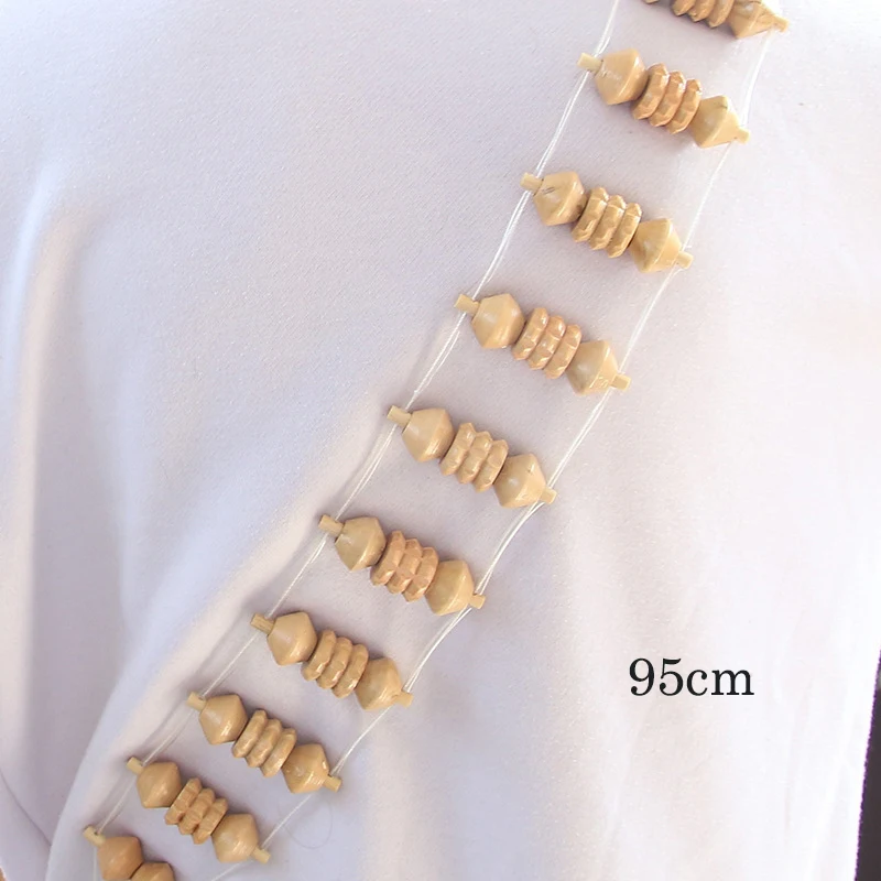 3. Lo strumento per massaggio con corda a rullo è realizzato in legno massello naturale al 100% di alta qualità, configurato con 12 set, 36 grandi perle di legno