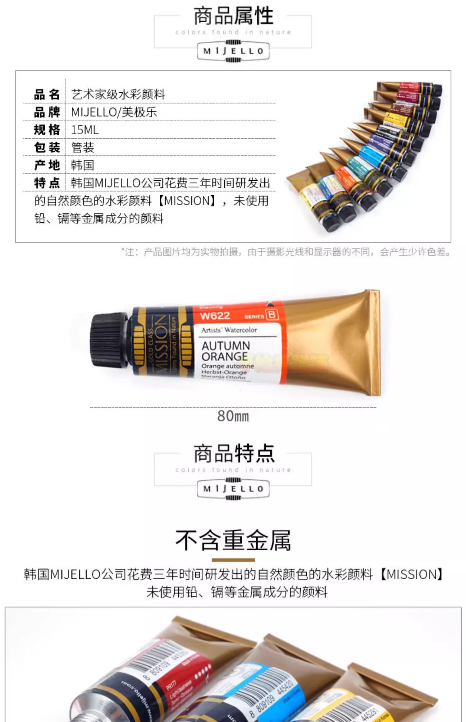 Corea MIJELLO pittura ad acquerello glod classe 15ml tubo pittura ad acquerello forniture artistiche