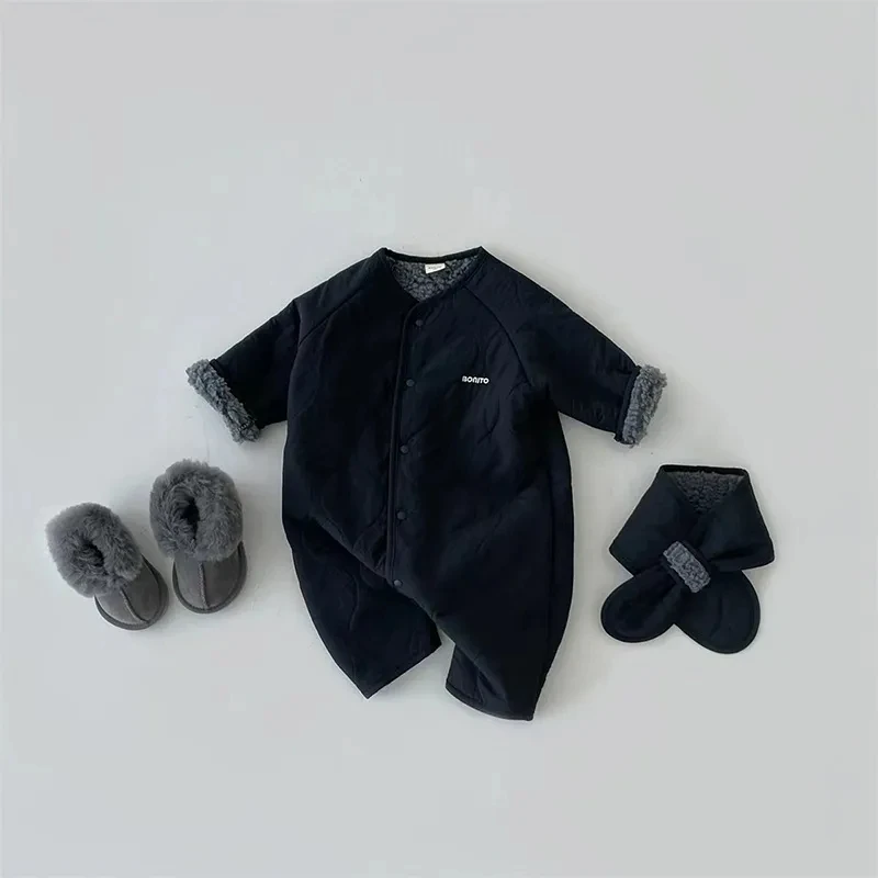 Coreano Baby Tuta Sciarpa Set Autunno Inverno Pagliaccetto di lana di agnello per le ragazze dei ragazzi Vestiti infantili del bambino Allentato Tutina neonato 2 pezzi