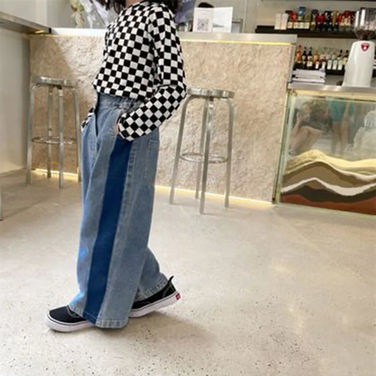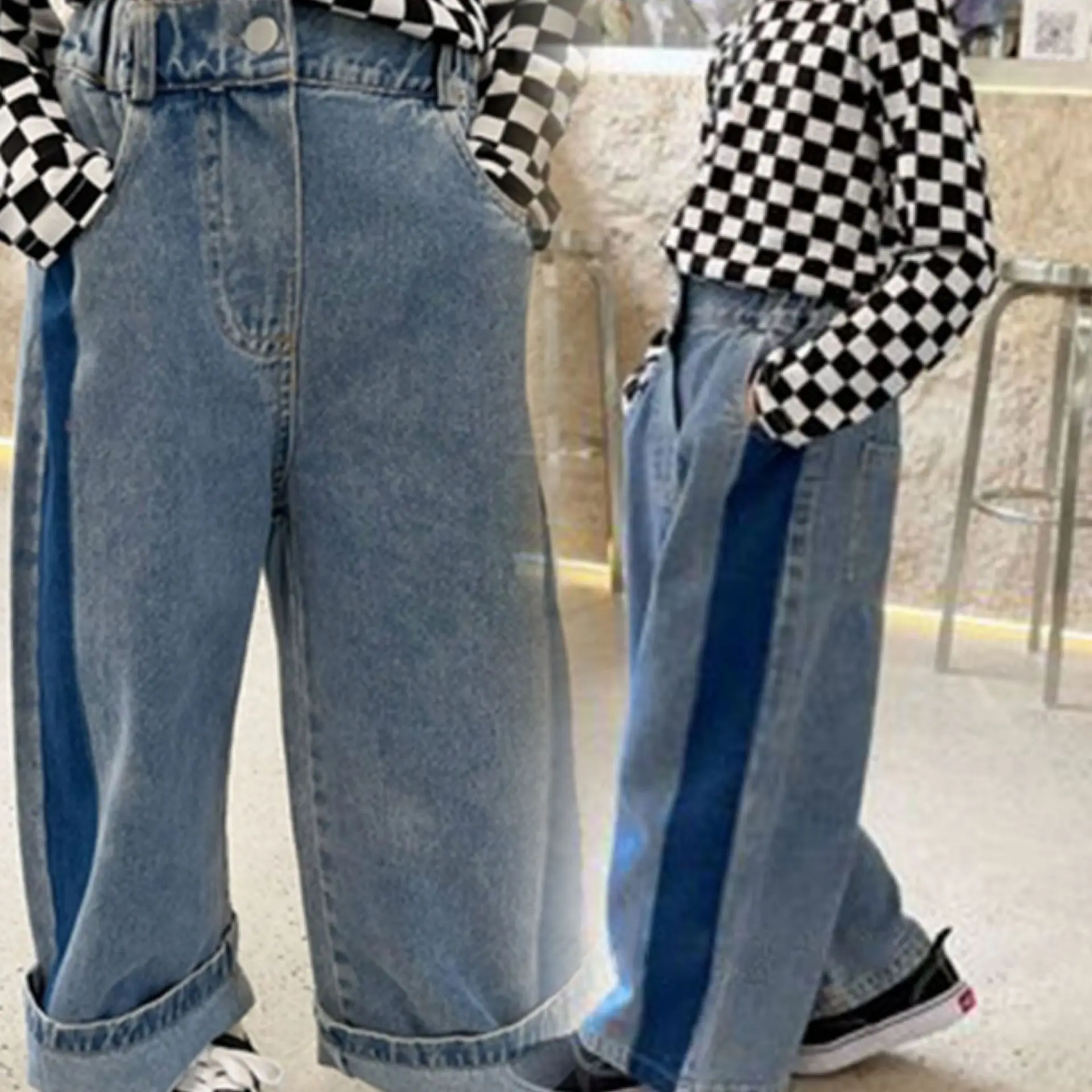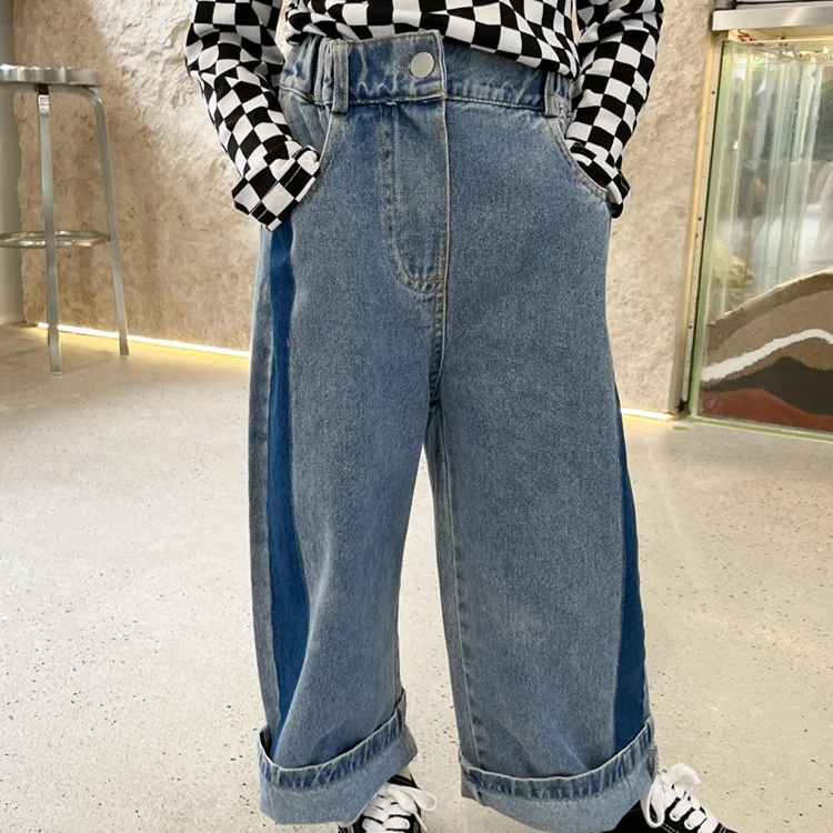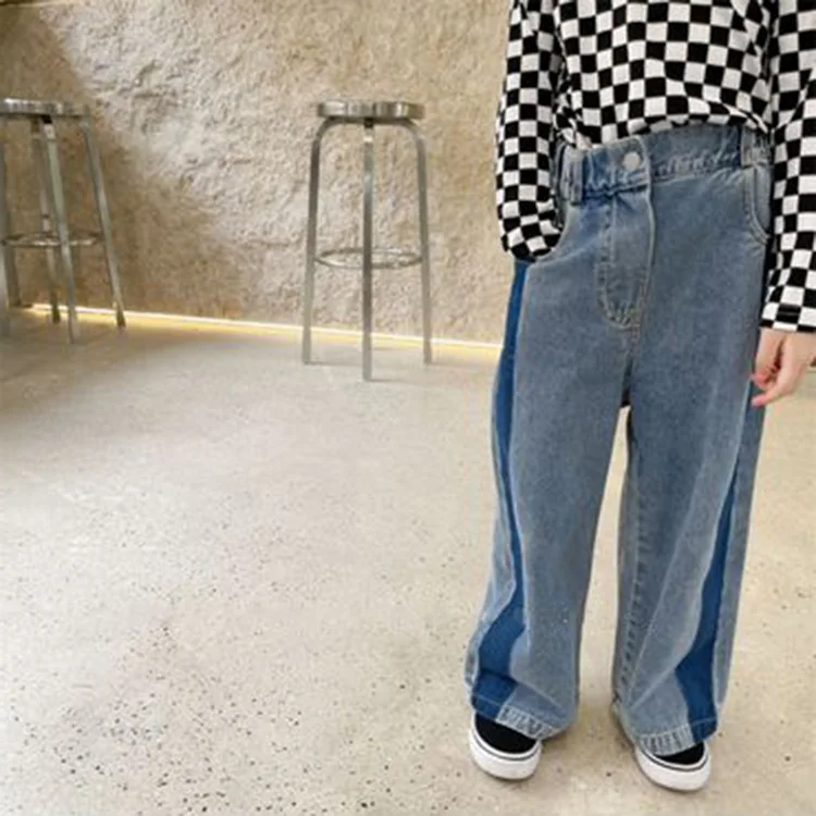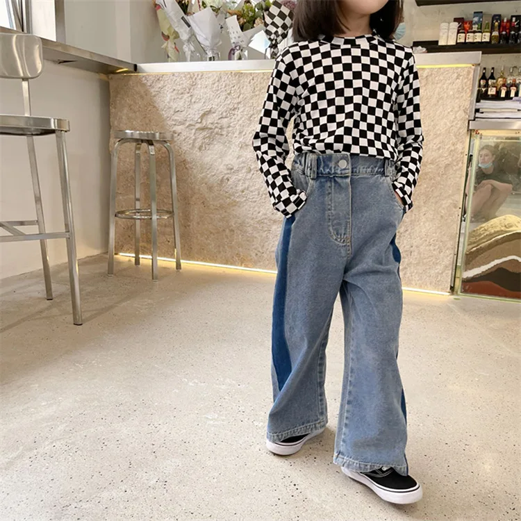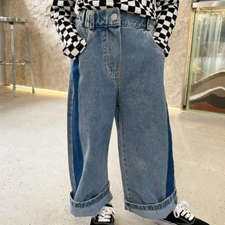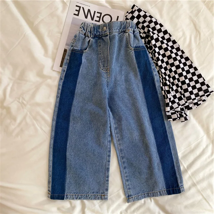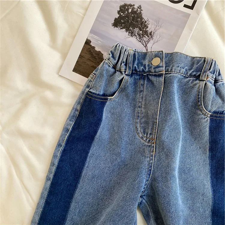 Coreano Per Bambini Ragazze Alla Moda Jeans Autunno A Vita Alta Solido Infantile Babys Ragazze Pantaloni In Denim Allentati 3-8Y Bambini Ragazze Pantaloni a Gamba Larga