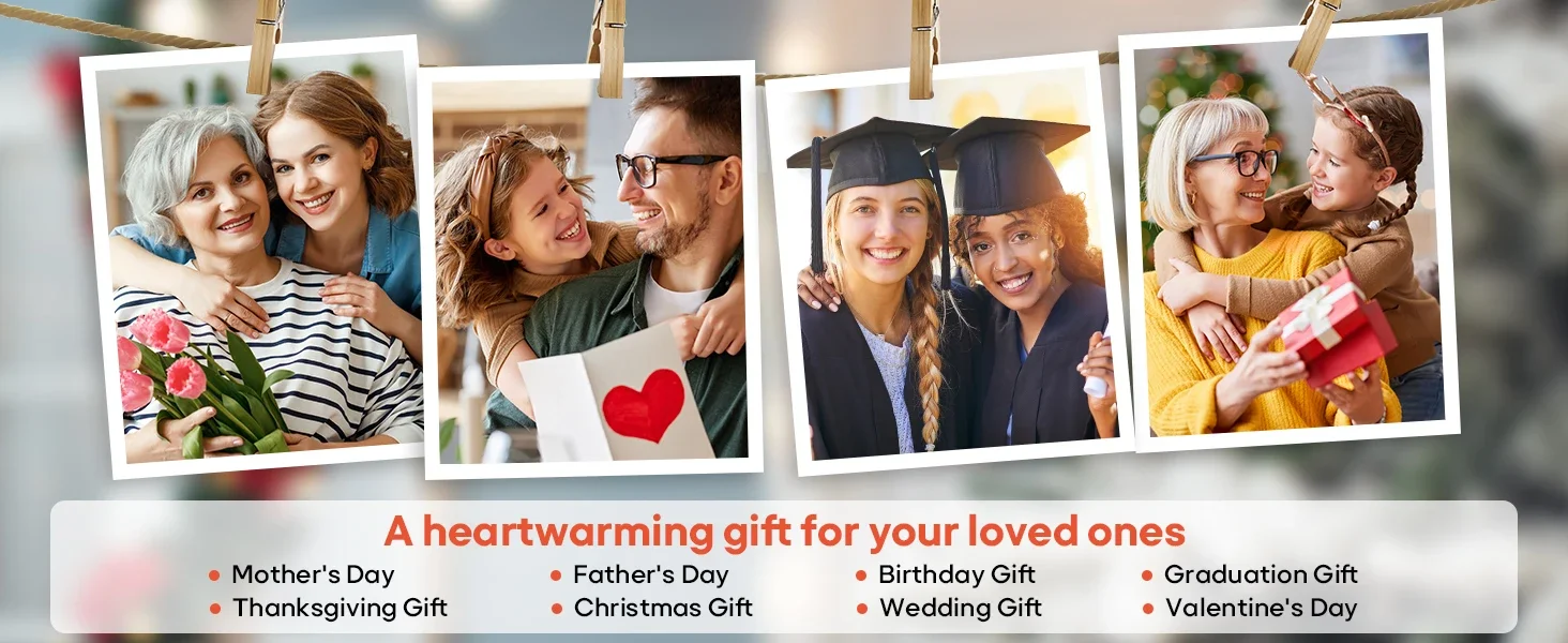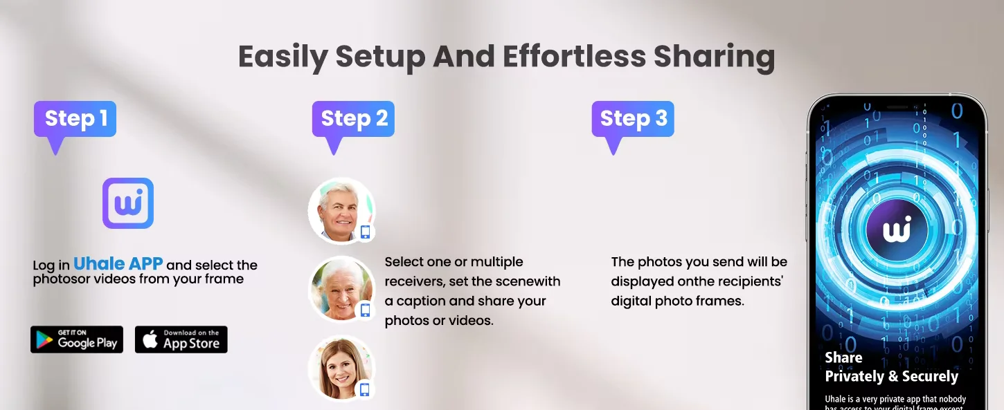 L’APP Uhale è completamente gratuito e supporta la trasmissione dei dati illimitata di foto e video.È adatto per qualsiasi gruppo di persone: compleanni, matrimoni, anniversari per la crescita del bambino, cerimonia di laurea, festa della mamma, festa del papà, nonno e nonna Non importa dove o come lontano, puoi sentiere che la tua famiglia al lato a tutte le volte.I cornici per foto digitali sono la scelta migliore per i regali.
