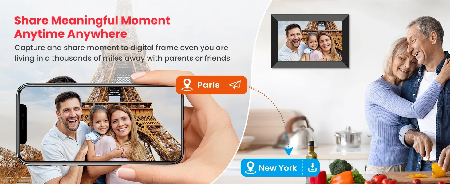 Cattura e condividere il momento alla cornice digitale anche che sei vivono in miglia lontani con genitori o amici.