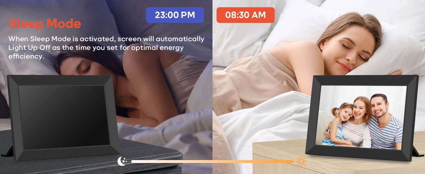 Avviare una risoluzione di 1280×800 su un touch screen LCD IPS da 10,1 pollici, questo cornice per foto digitali garantisce un’affrancatura chiara e vibrante delle tue foto e delle video preferite.