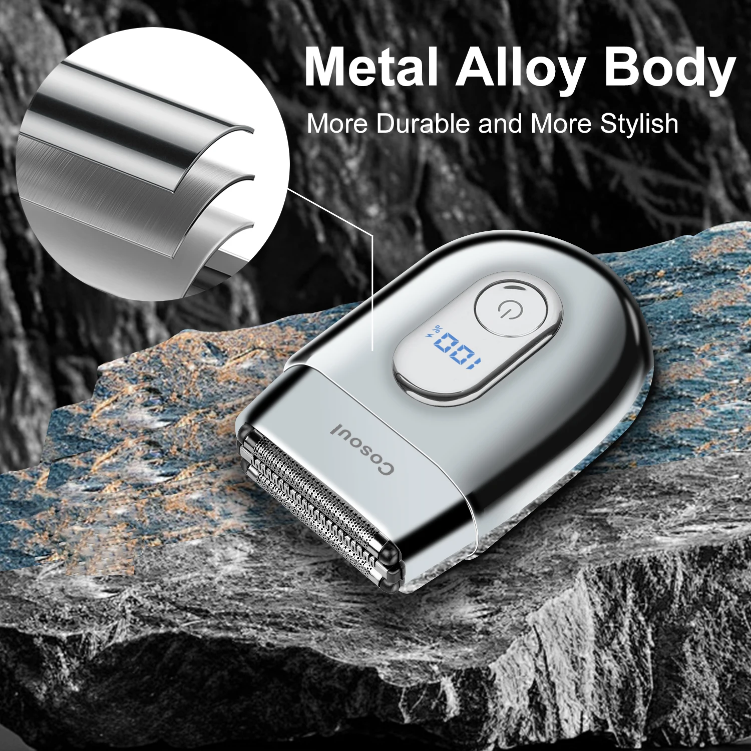 Cosoul Rasoio da Uomo Rasoio Elettrico Portatile Piccolo Mini Rasoio 3 Lame 900mAh Batteria Ad Alta Capacità Design con Blocco da Viaggio