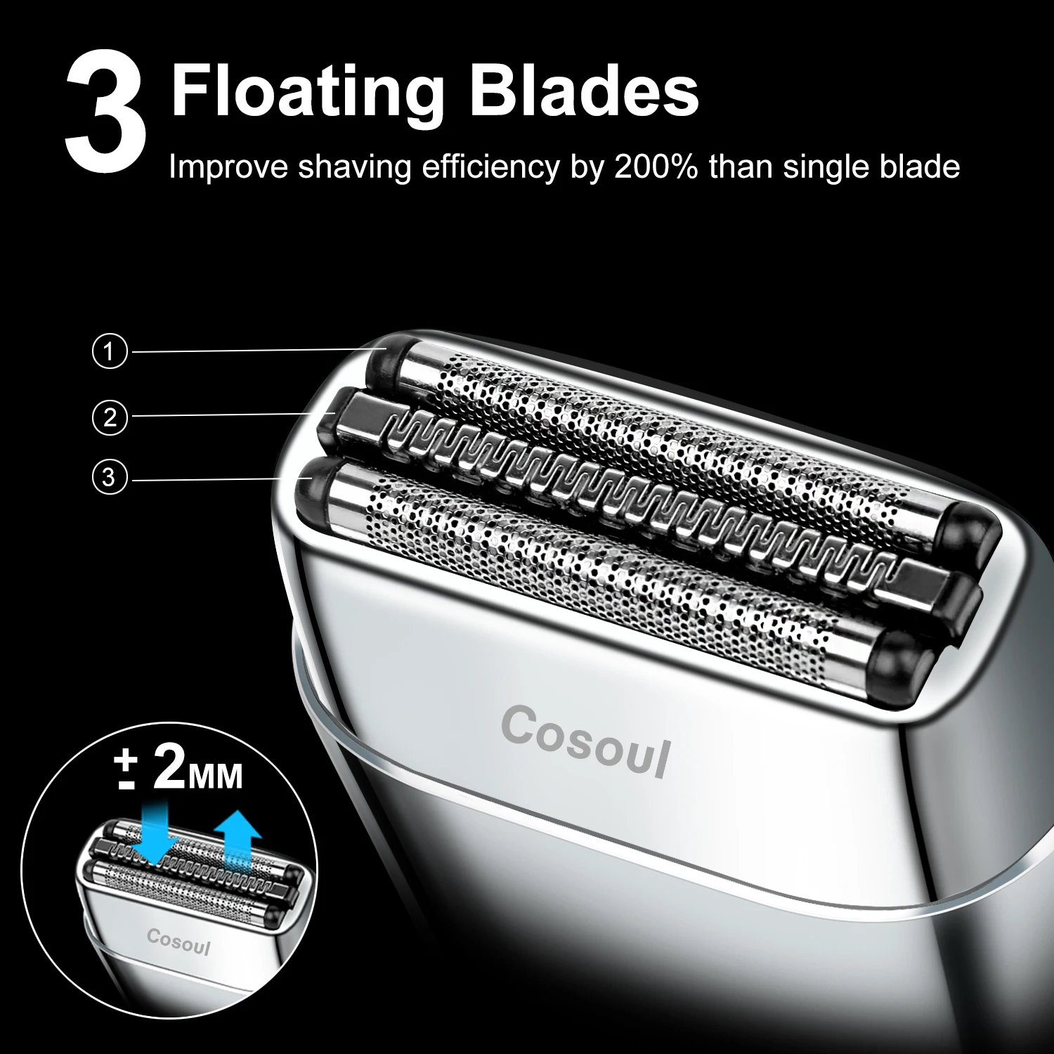 Cosoul Rasoio da Uomo Rasoio Elettrico Portatile Piccolo Mini Rasoio 3 Lame 900mAh Batteria Ad Alta Capacità Design con Blocco da Viaggio 1Cosoul Rasoio da Uomo Rasoio Elettrico Portatile Piccolo Mini Rasoio 3 Lame 900mAh Batteria Ad Alta Capacità Design con Blocco da Viaggio