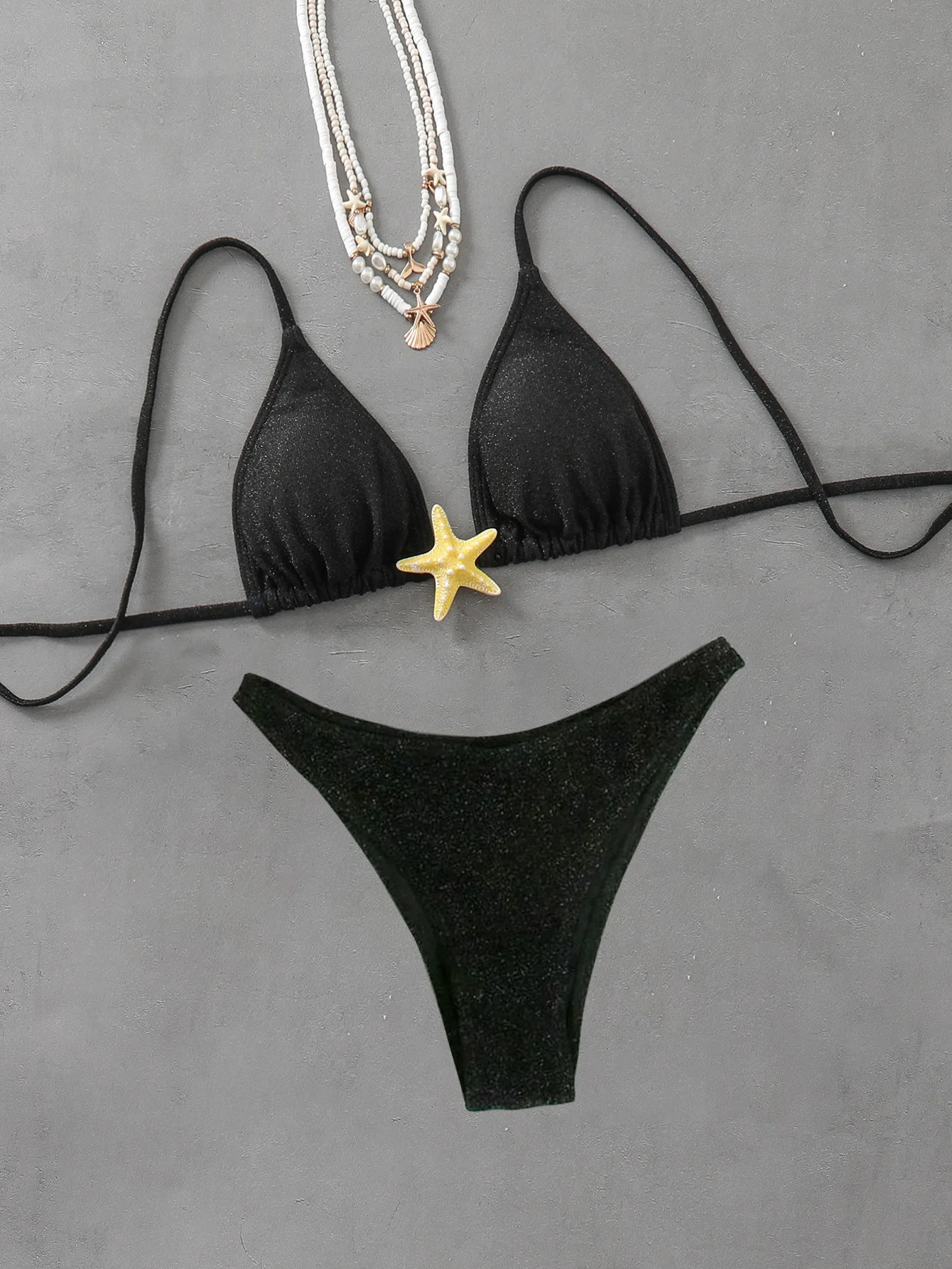 Costume da bagno da spiaggia sessuale con tracolla sottile tinta unita bikini da donna
