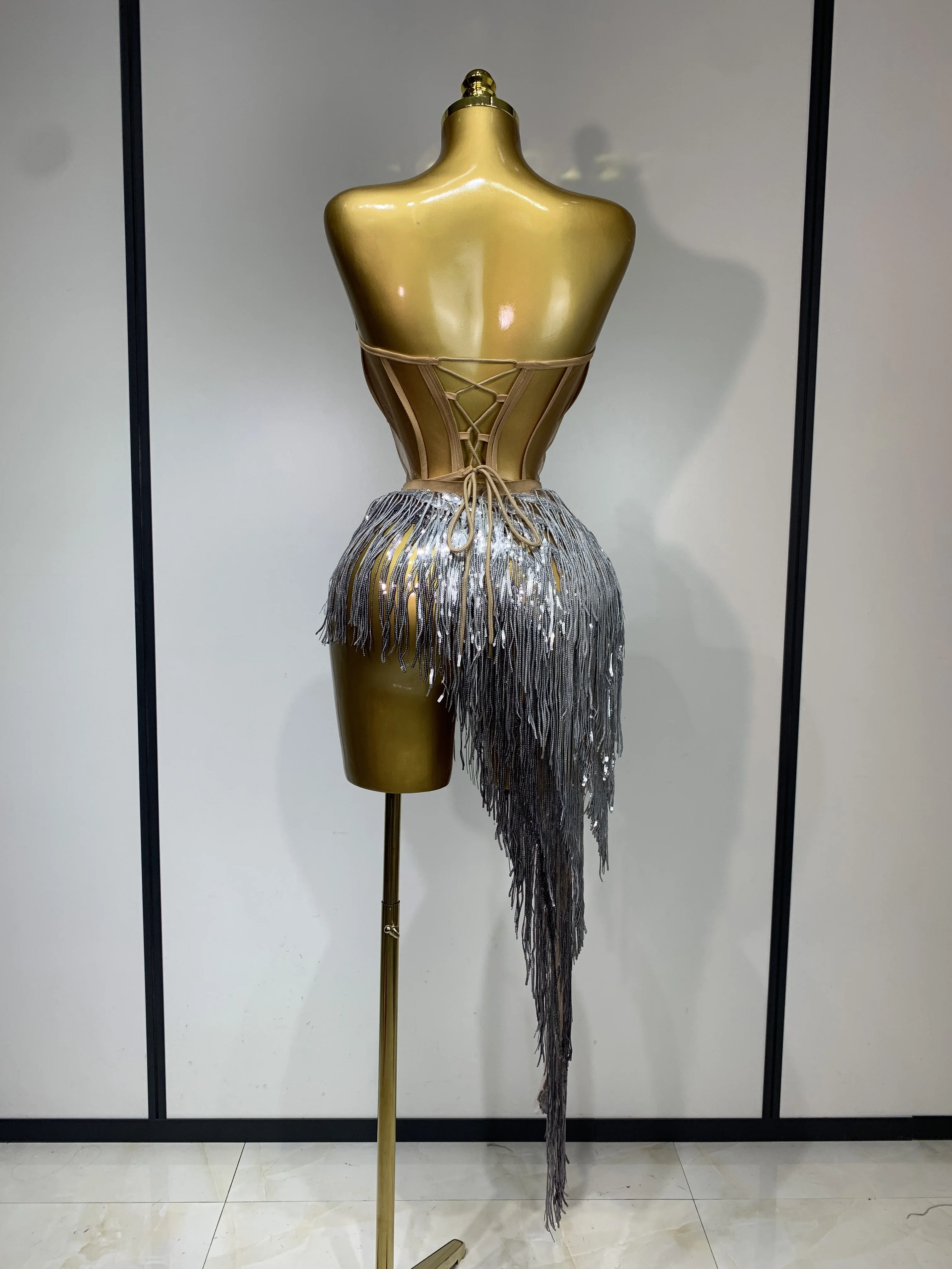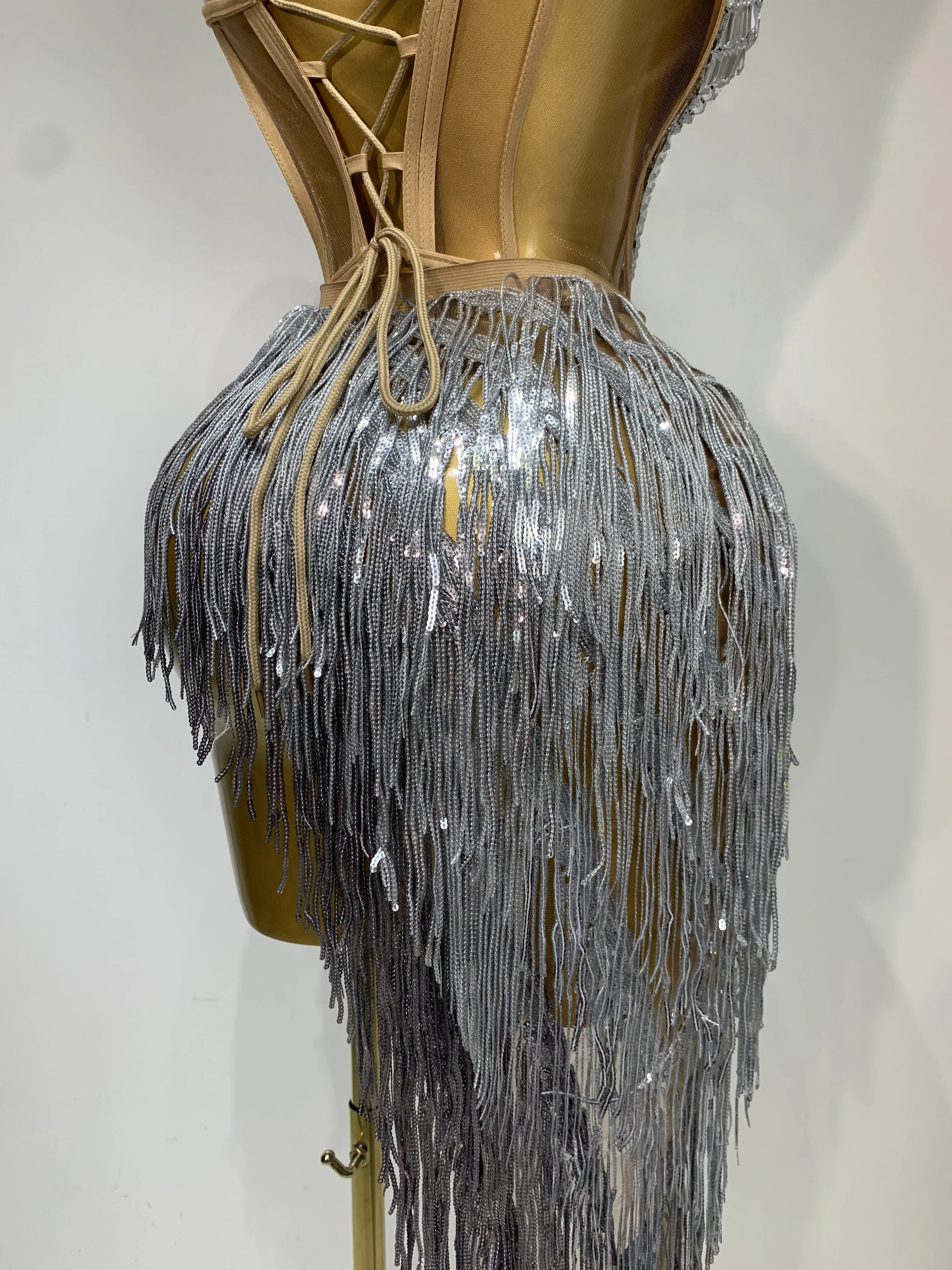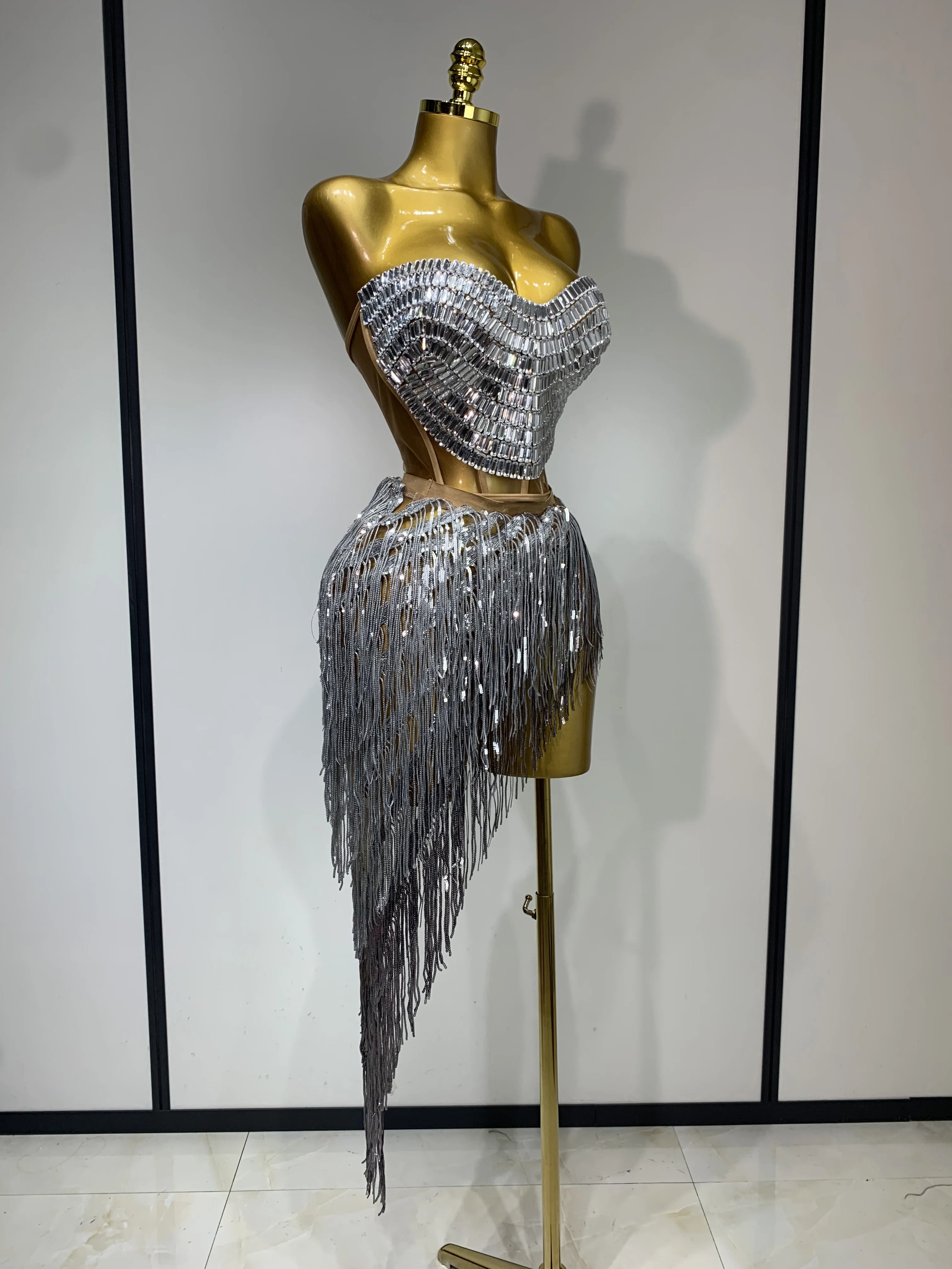 Costume da donna sexy per ballerino e cantante, discoteca, bar, ragazza, con diamanti scintillanti, nappa, set da due pezzi, abito da sera per feste