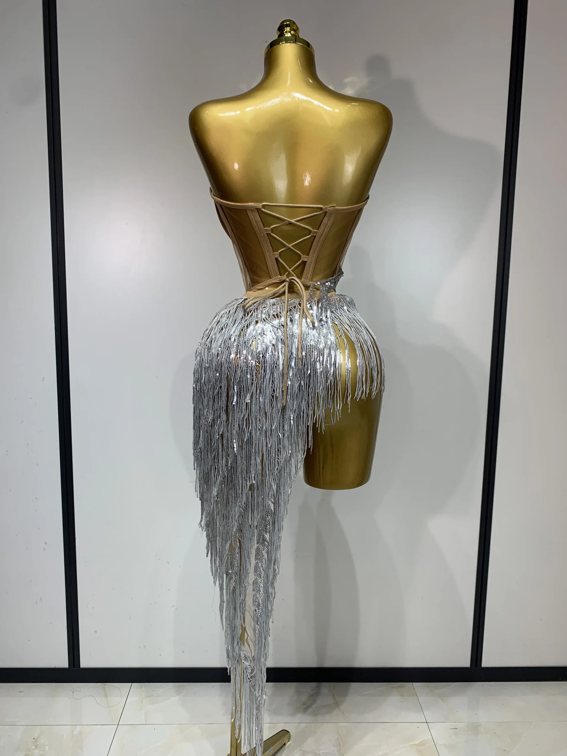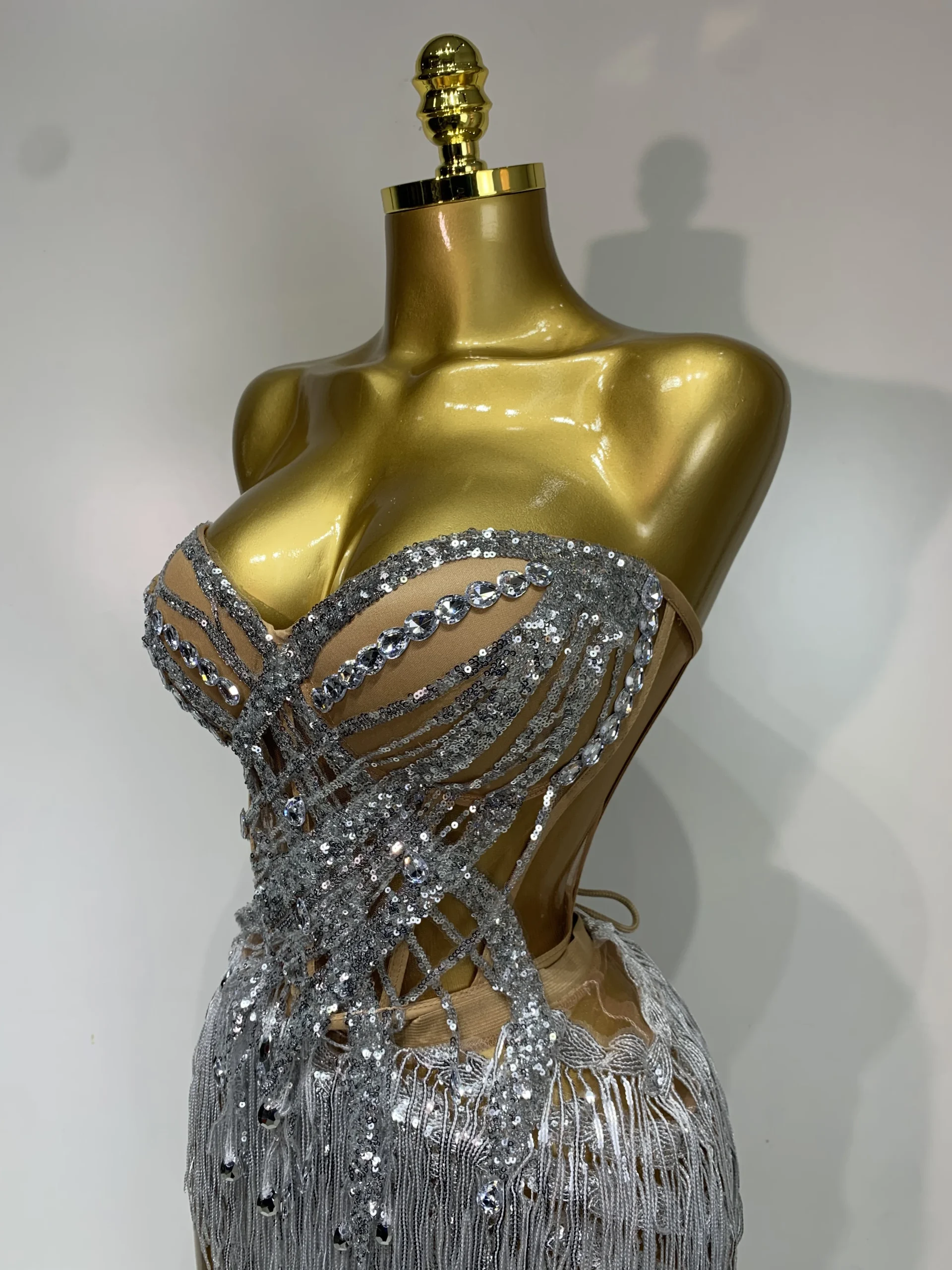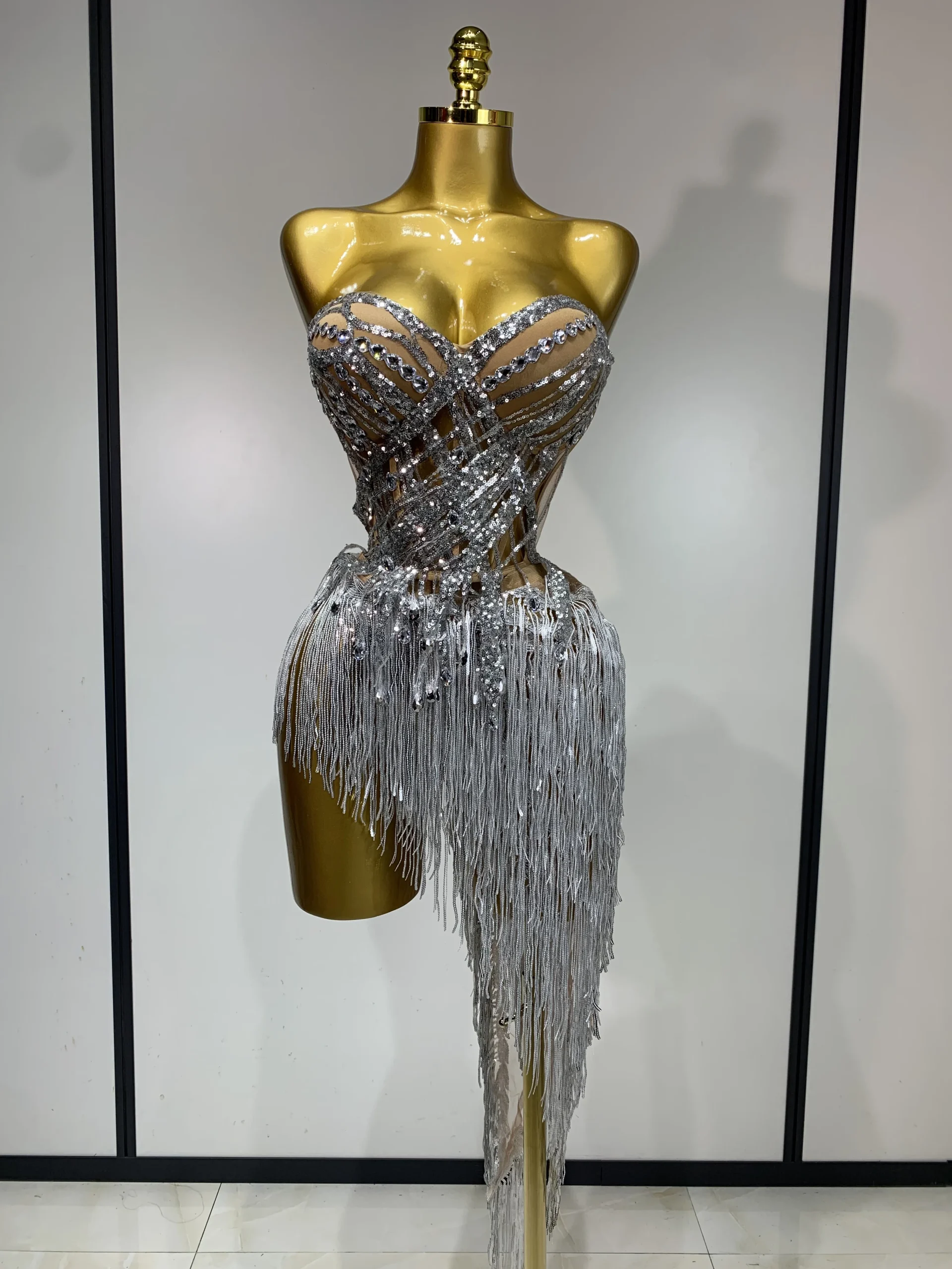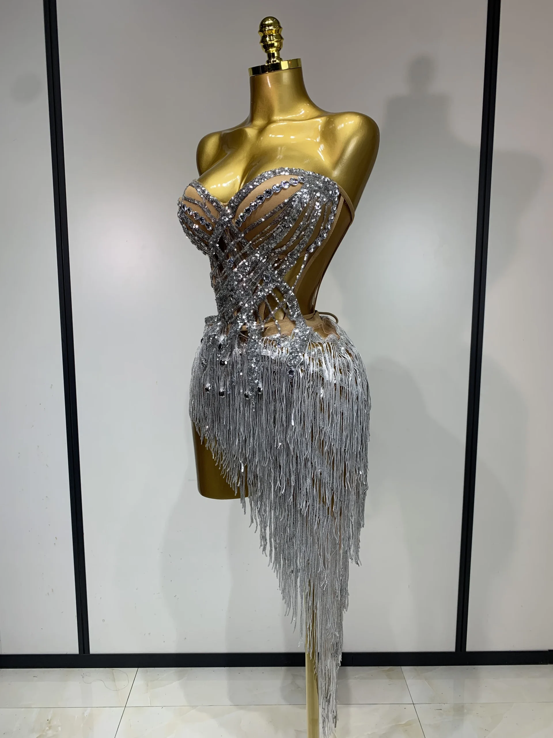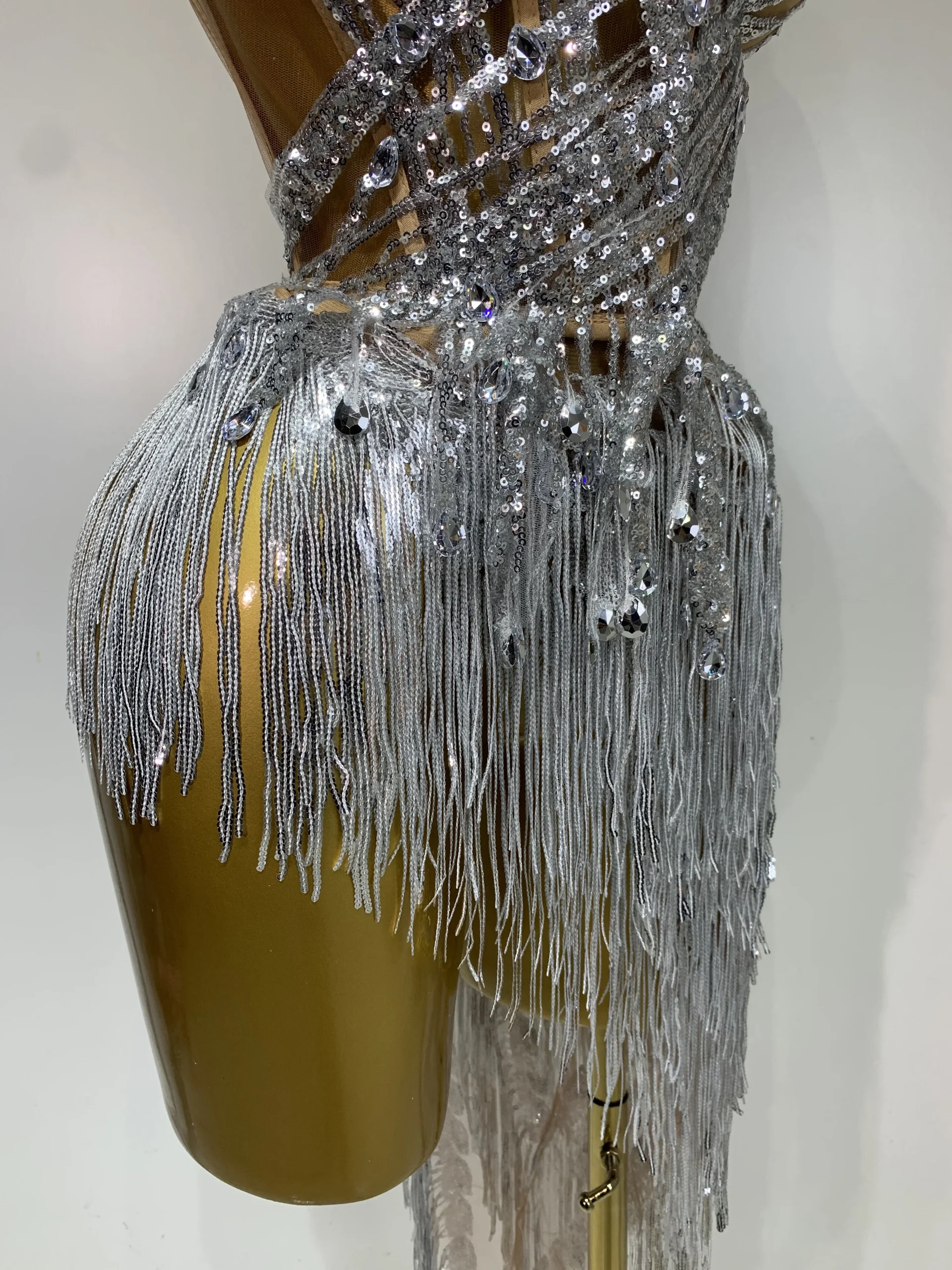 Costume da donna sexy per ballerino e cantante, discoteca, bar, ragazza, con diamanti scintillanti, nappa, set da due pezzi, abito da sera per feste
