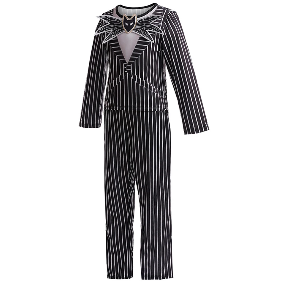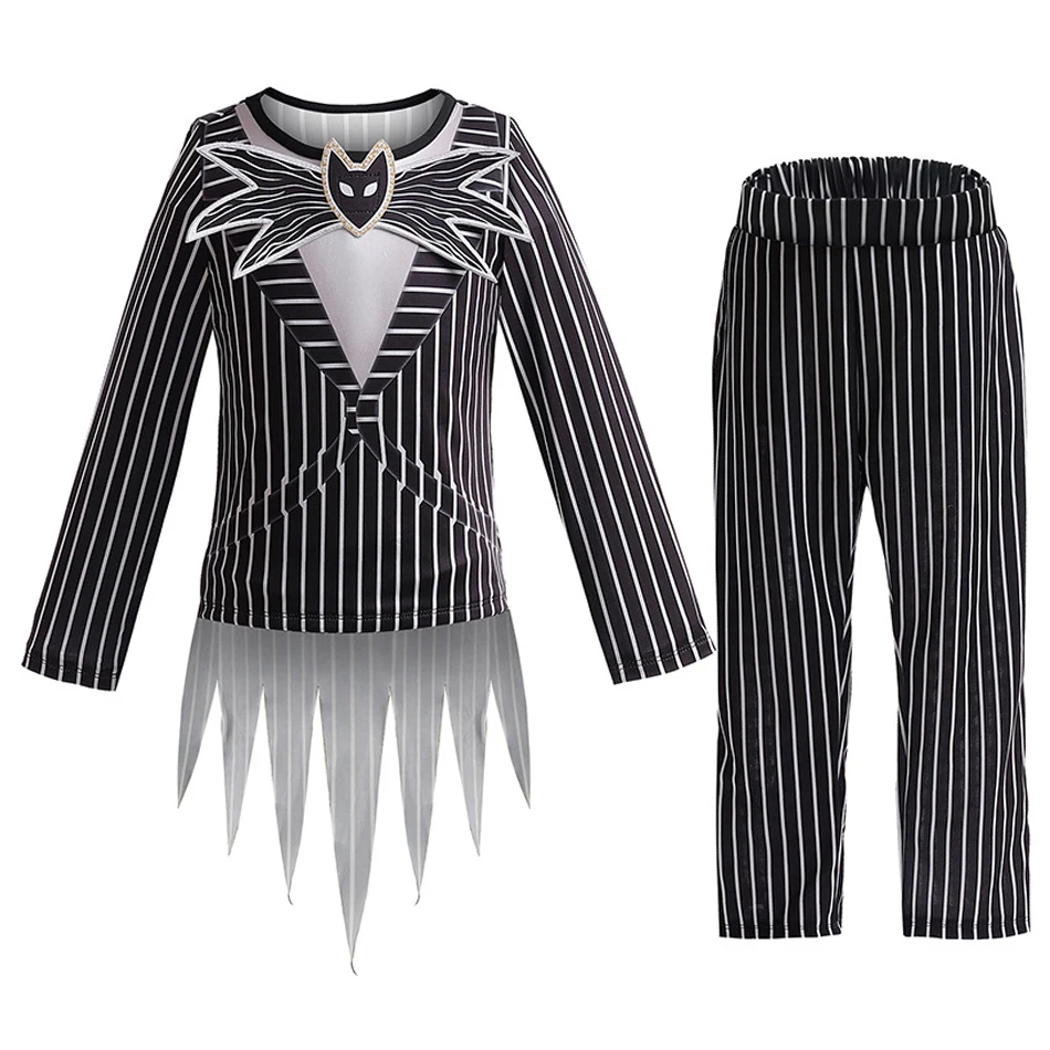 Costume di Halloween per bambini Jack Cosplay Skellington Abito a righe Bambini Gioco di ruolo horror Carnevale di Natale Vestito da festa di Halloween
