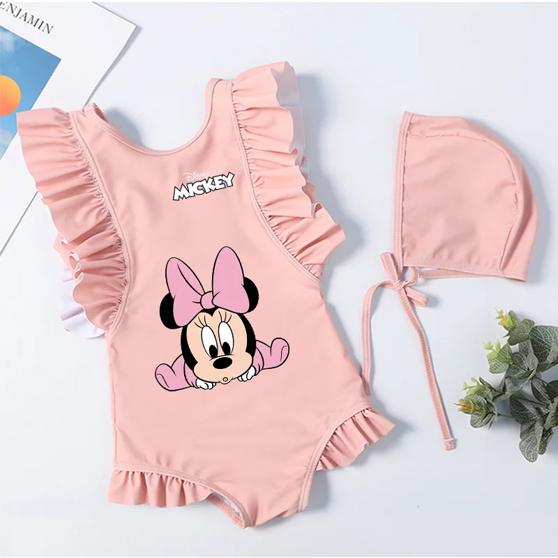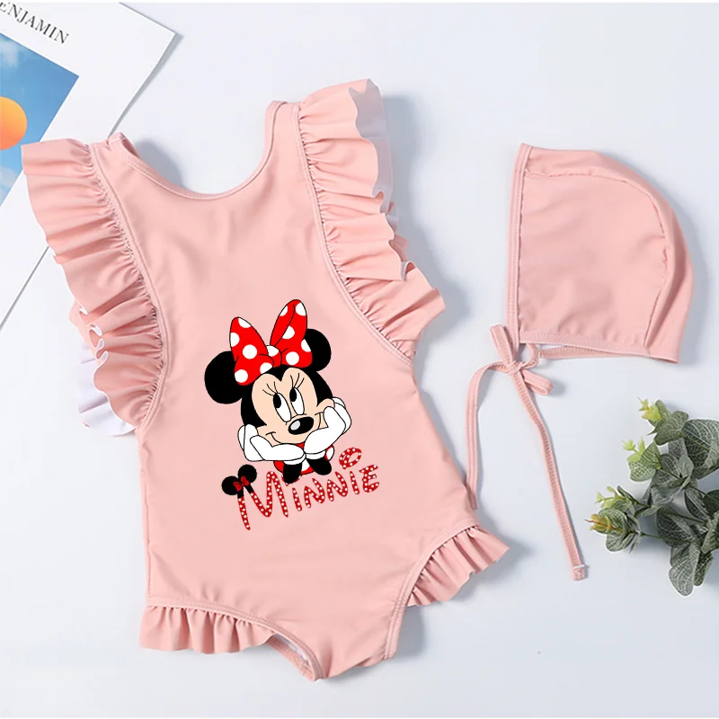 Costumi da bagno estivi per ragazze di Topolino Minnie Set bikini e costumi da bagno per bambini con cuffia da bagno Costumi da bagno per bambini