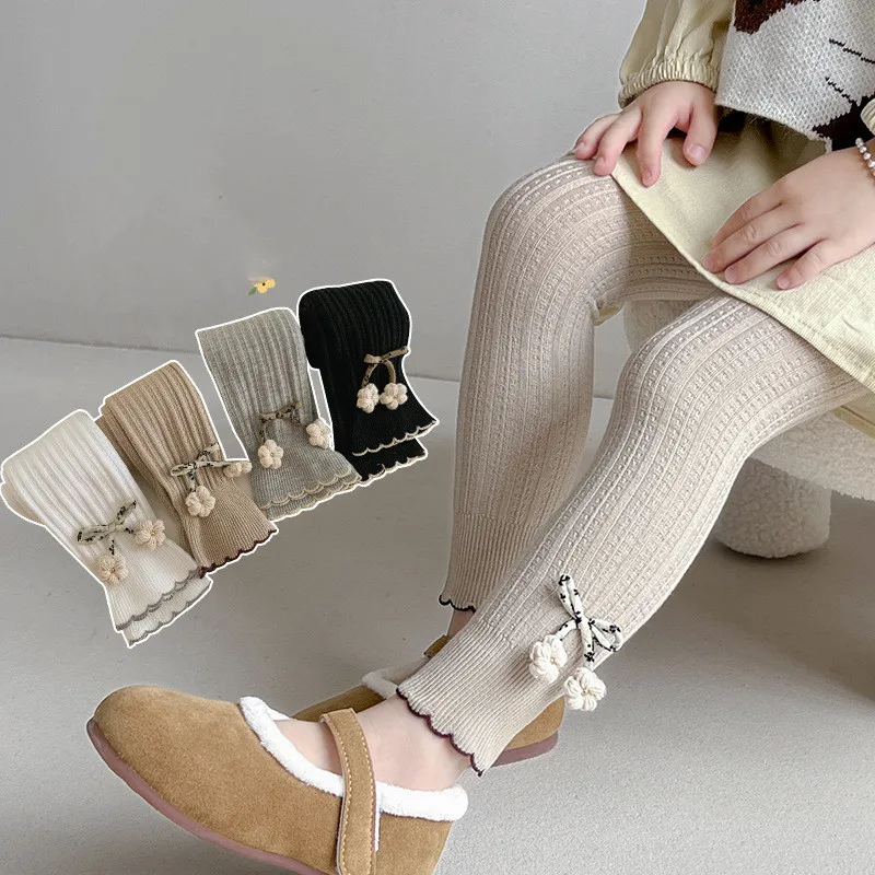 Cotone Del Bambino Del Fiore Collant 2023 Delle Ragazze di Autunno della Molla Coreano Carino Pantaloni Fondo 0-7 Anni Per Bambini Del Merletto Vestiti All’ingrosso