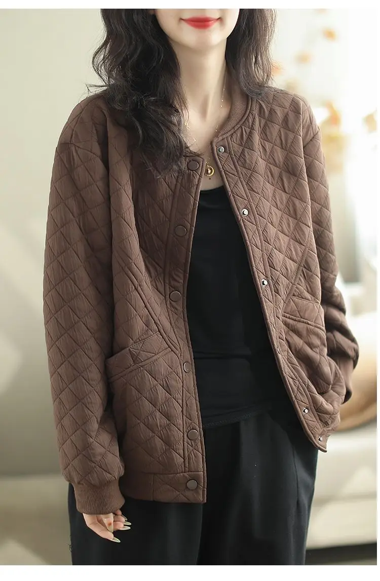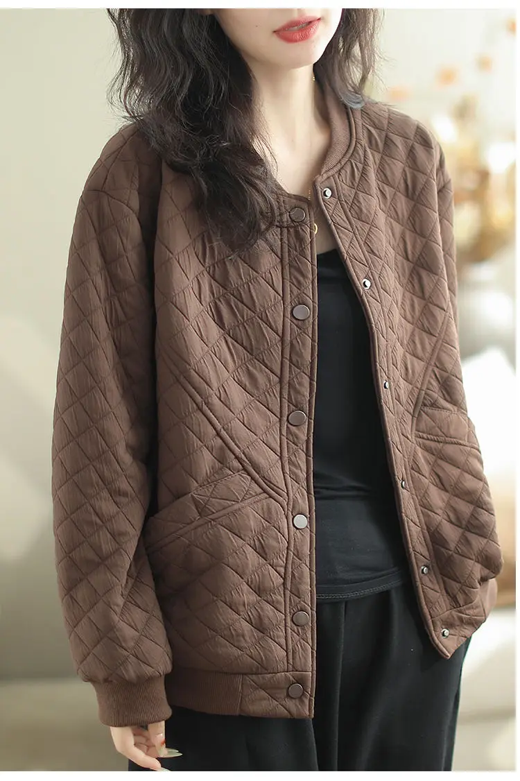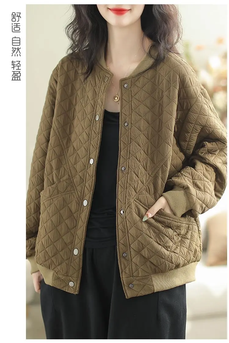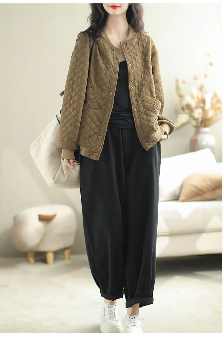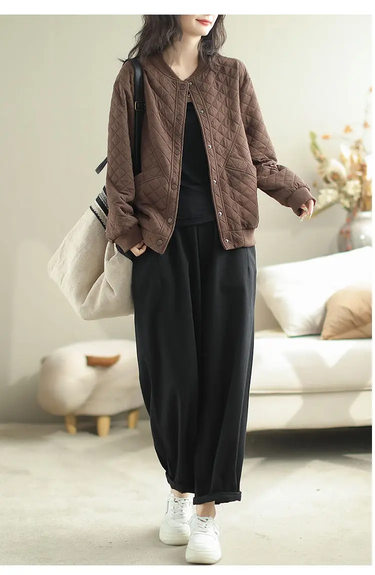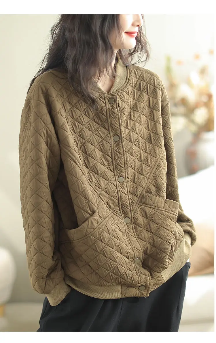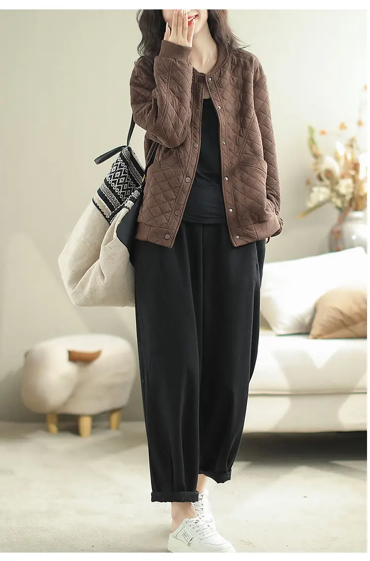Cotone foderato in cotone per giacche Autunno Invernonuove donne girocollo artistico vestibilità ampia dimagrante giunture giacche casual in cotone