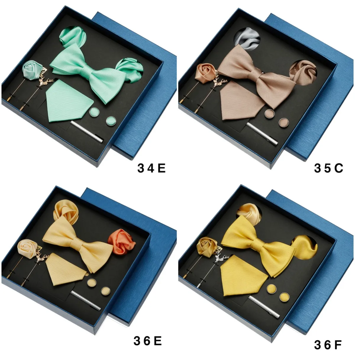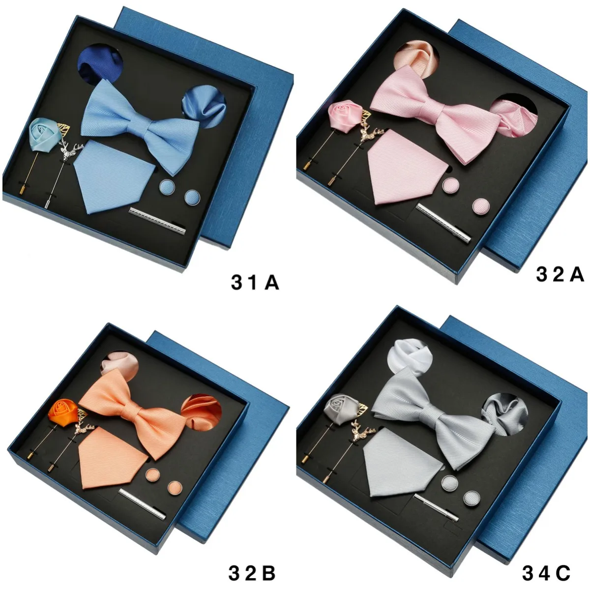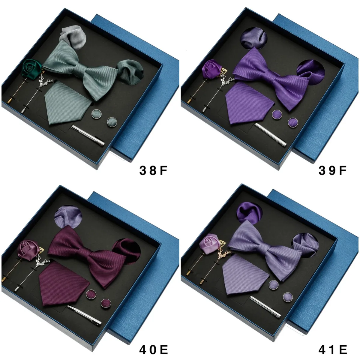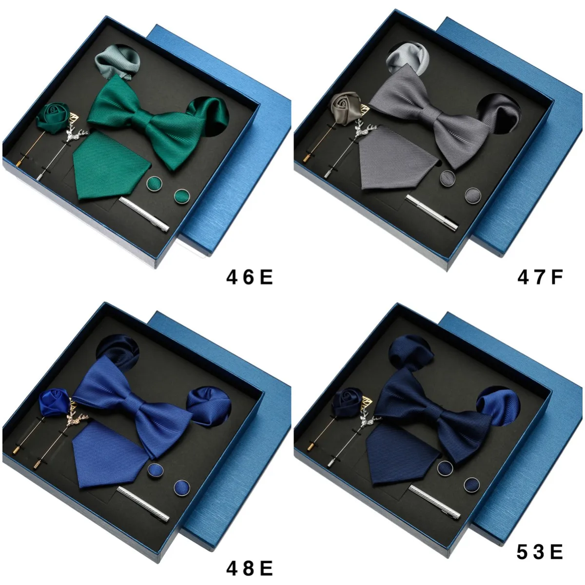 (Include 1 cravatta e 1 papillon e 2 gemelli e 1 fermacravatta e 2 spille e 2 tasche squre)