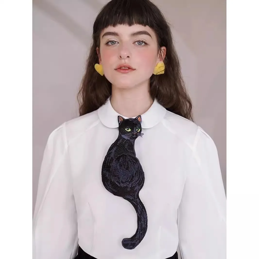 Cravatte per gatti neri senza nodi di design da donna per camicia Cravatta per cravatta da discoteca per ragazze da ragazzo TB2097