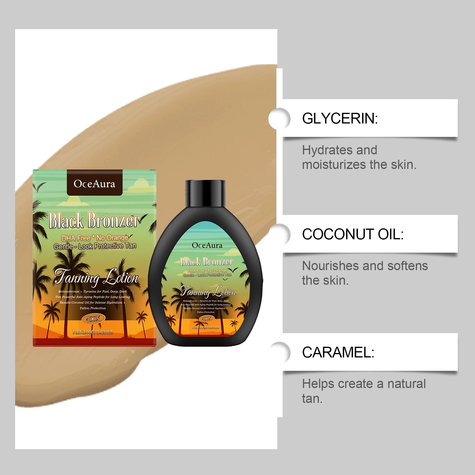 ●Function: Natural Bronze Wheat Skin / Lasting Solarium / Moisturizing Skin