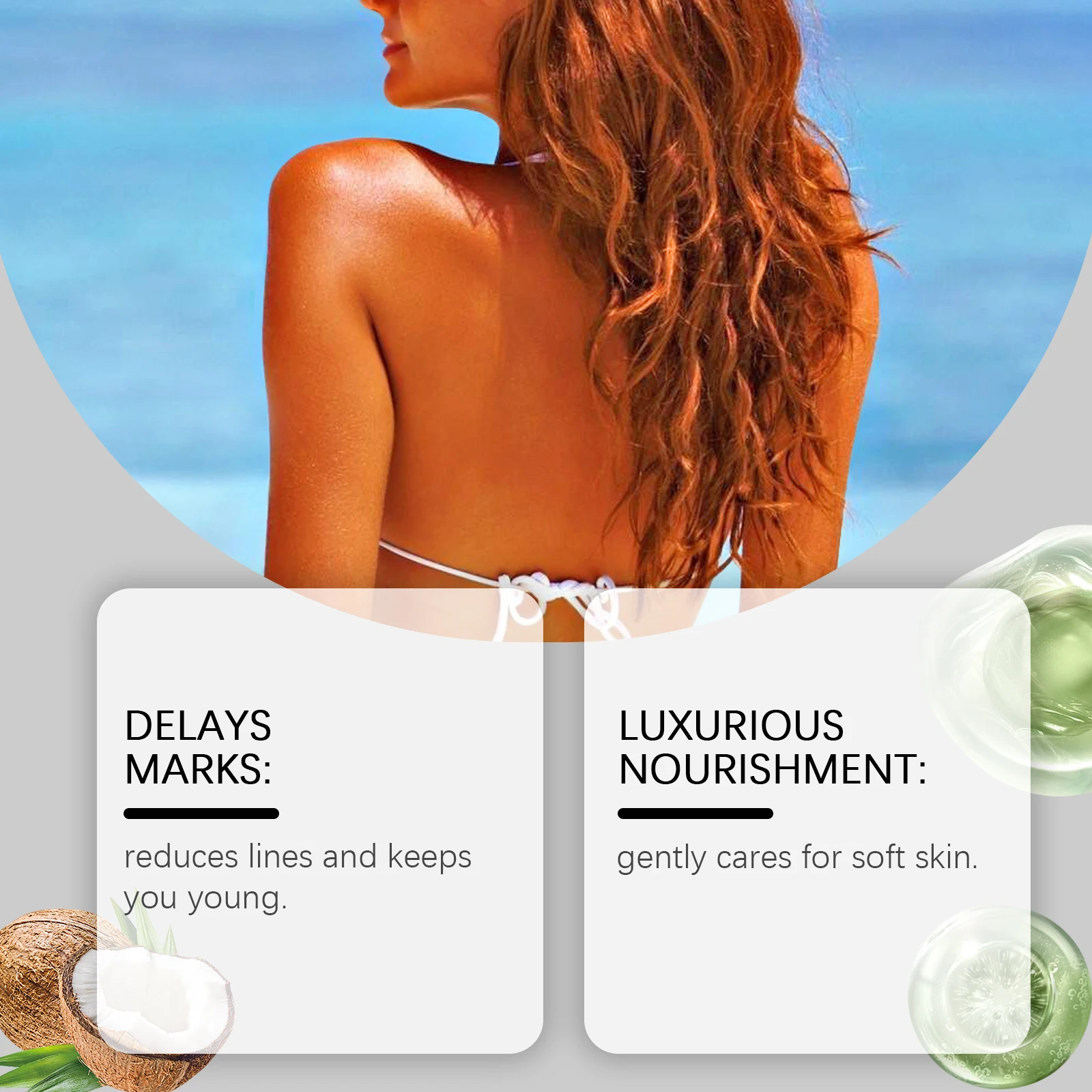4.Coconut tanning cream usually has a light coconut aroma, which can bring a pleasant user experience, help users relax their body and mind, as if they are in a tropical area, to some extent relieve stress and fatigue, and increase the enjoyment of the tanning process.