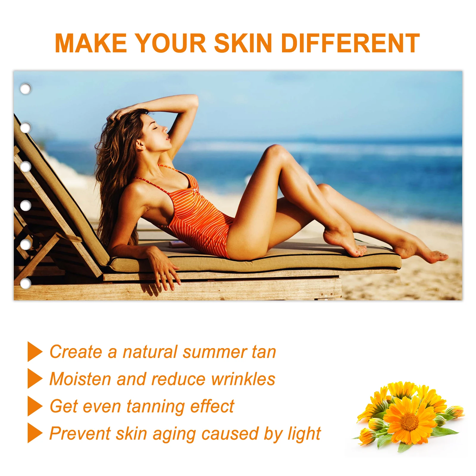 4. Facile da usare, applicare uniformemente in tutto il corpo prima dell’esposizione alla luce solare. È anche possibile riapplicare dopo il nuoto, la sudorazione o l’asciugatura con un asciugamano per mantenere la pelle marrone.