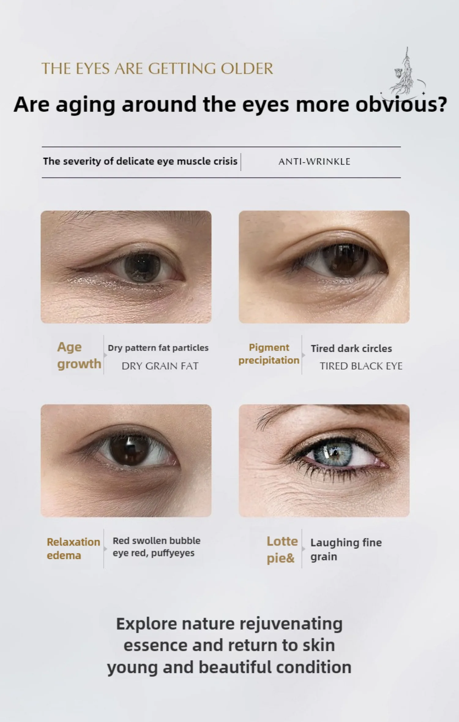 Riduce i segni dell’invecchiamento: aiuta a ridurre i problemi della pelle degli occhi come occhiaie, gonfiore, linee sottili, borse per gli occhi, rughe e piedi di gallella, fare gli occhi giovane e energetico