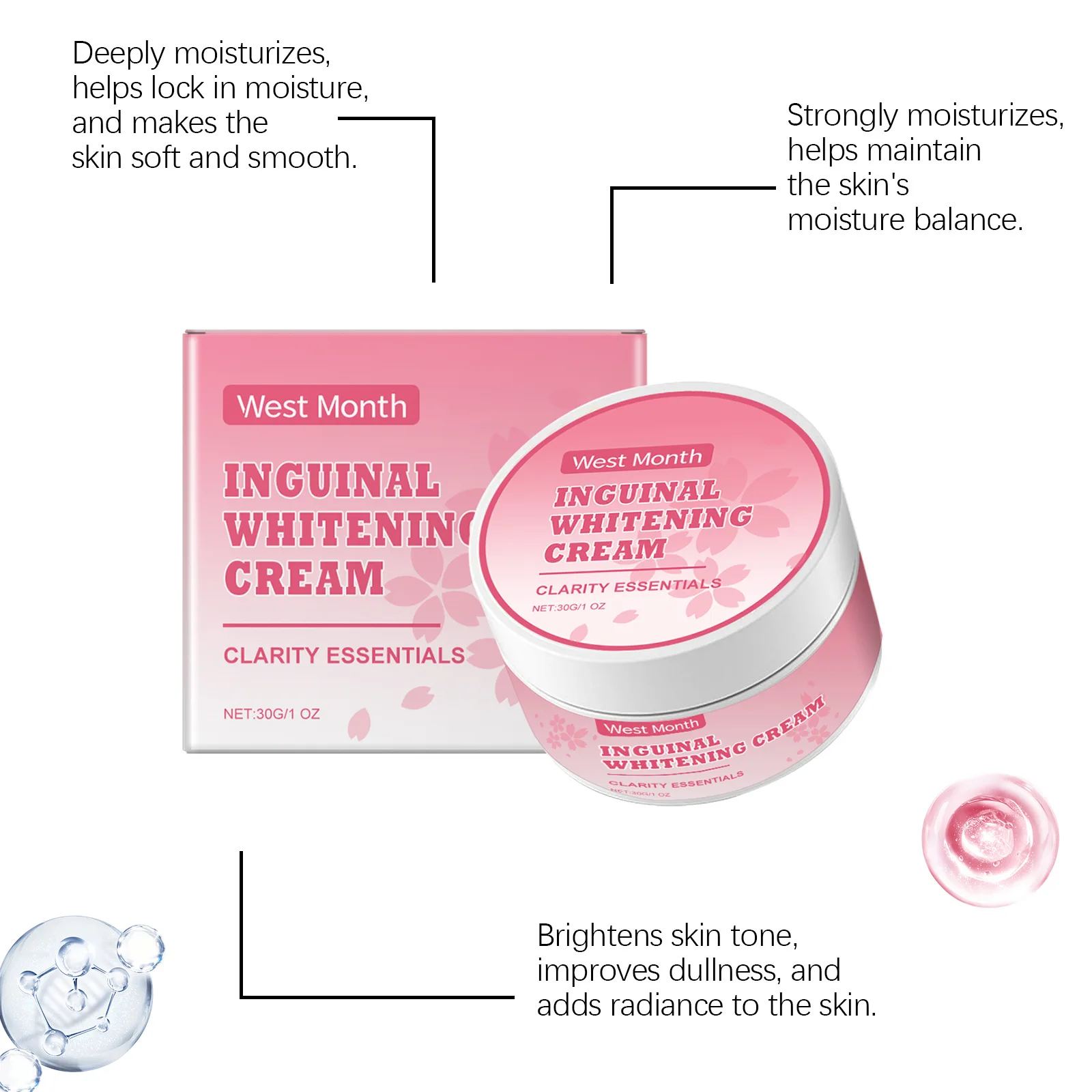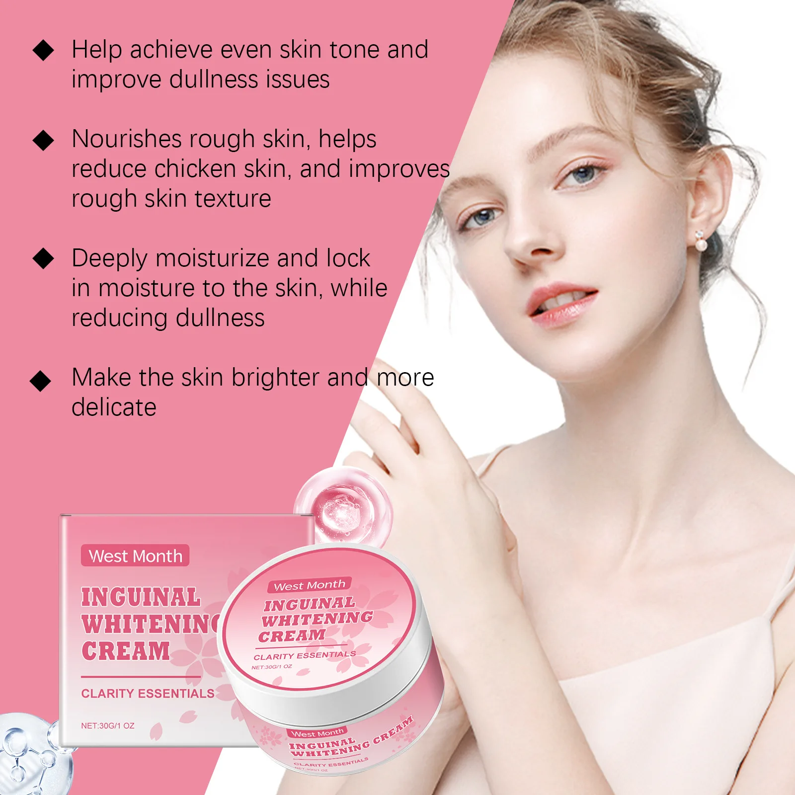 West&Month Crema Sbiancante Corpo Parte Privata Ascelle Sbiancamento Glutei Ginocchio Illuminare Rimuovere Interno Coscia Intimo Inguinale Scuro Opaco Cura Della Pelle 30g