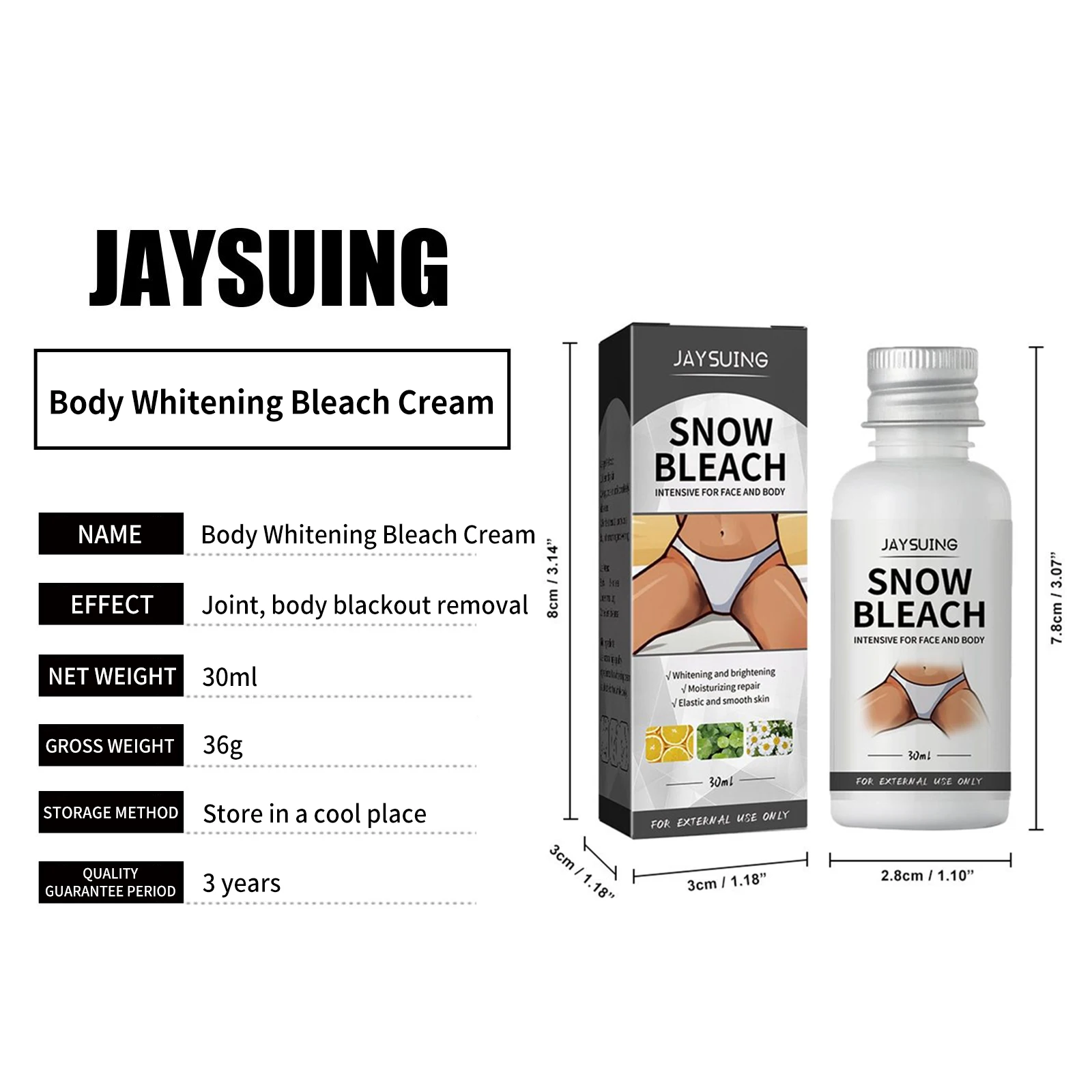 Jaysuing Crema Sbiancante per il Corpo Schiarisce Ascelle Gomito Ginocchia Rimozione delle Articolazioni Parti Intime Macchie Scure Melanina Crema Sbiancante per Neve 30ml