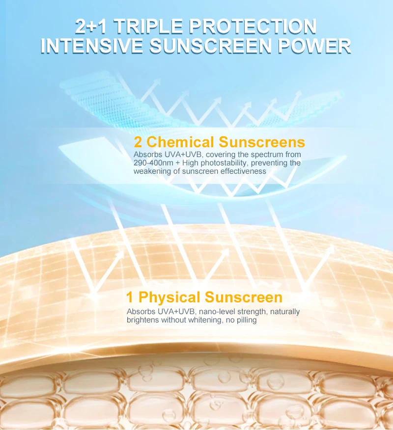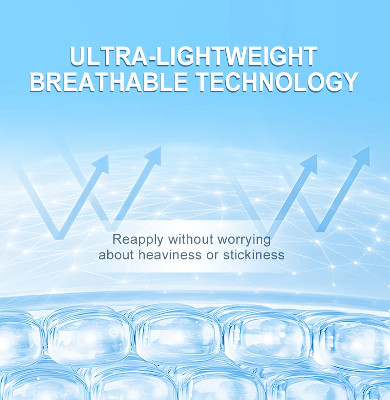 La combinaison à double action d’élite solaires chimiques et physiques offre une protection solaire plus large, et la formule imperable et ressante à la sueur amerliore la ressance au soleil.