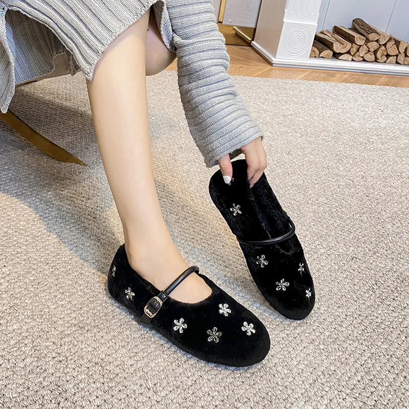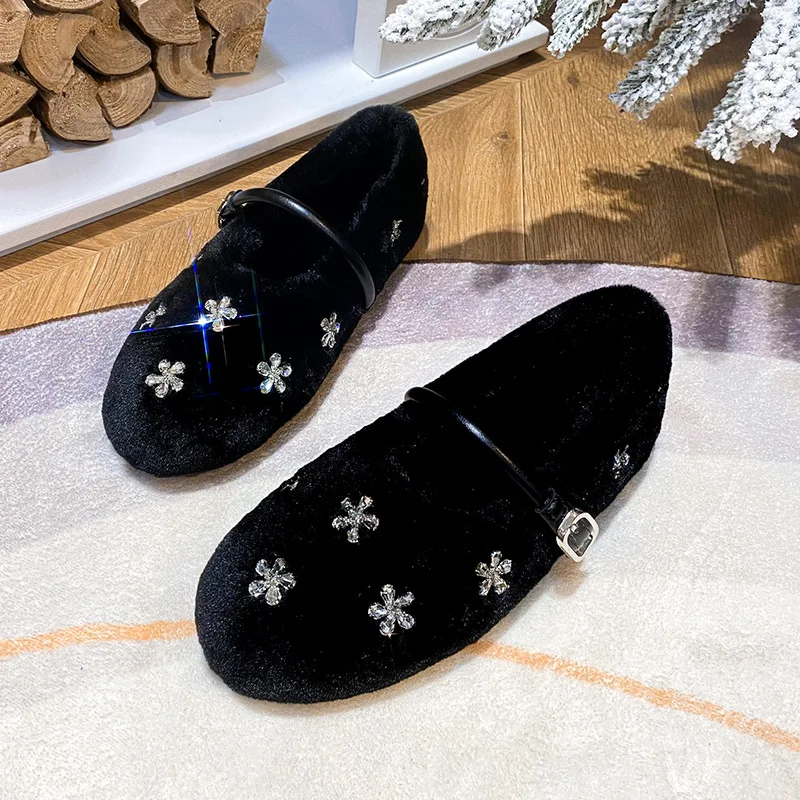 Crystal Flower Fur flats donna cinturino alla caviglia mary janes scarpe pelose strass fiocchi di neve mocassini di pelliccia scarpe invernali big size 43 1Crystal Flower Fur flats donna cinturino alla caviglia mary janes scarpe pelose strass fiocchi di neve mocassini di pelliccia scarpe invernali big size 43