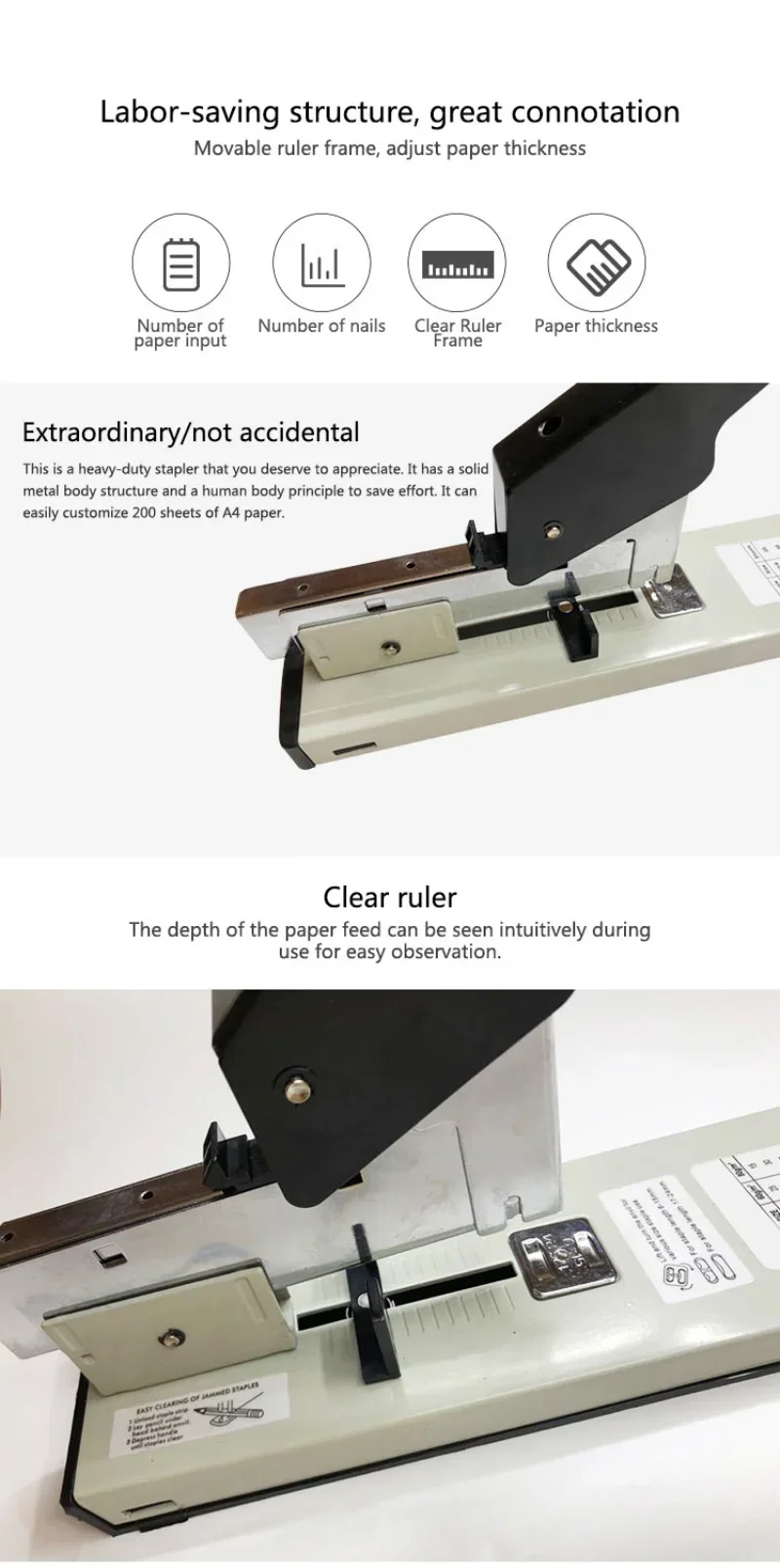 Cucitrice per carichi pesanti da 120 fogli con righello, spessore di rilegatura regolabile Cucitrice per carta metallica Graffette adatte 23/6, 23/8, 23/10, 23/13
