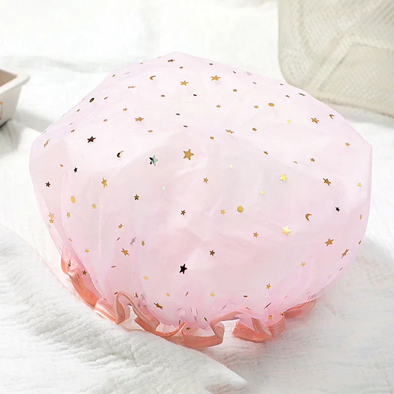 Cuffia da doccia a doppio strato cuffia da bagno impermeabile in PVC per donna adulta cucina a prova di olio bagno bagno cuffia da doccia per uso domestico