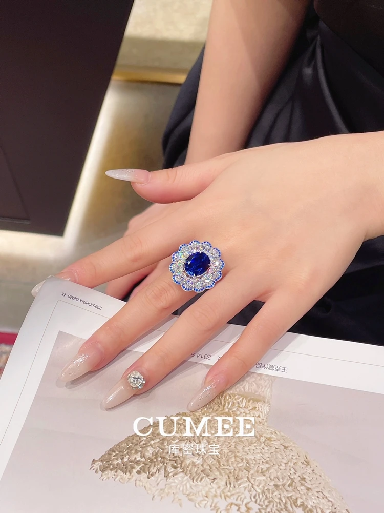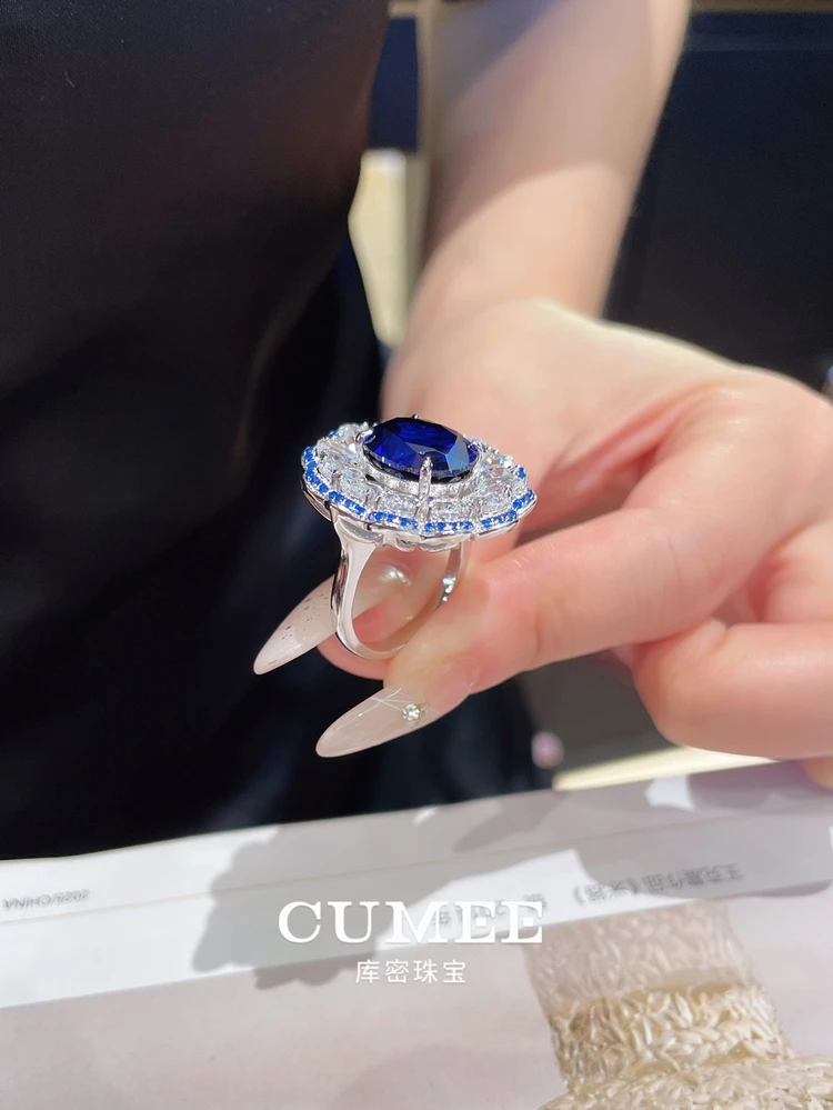 CUMEE Nuovo stile cinese Gonna alla moda Anello da donna Stile design Anello con zaffiro sintetico coltivato. Oro placcato argento